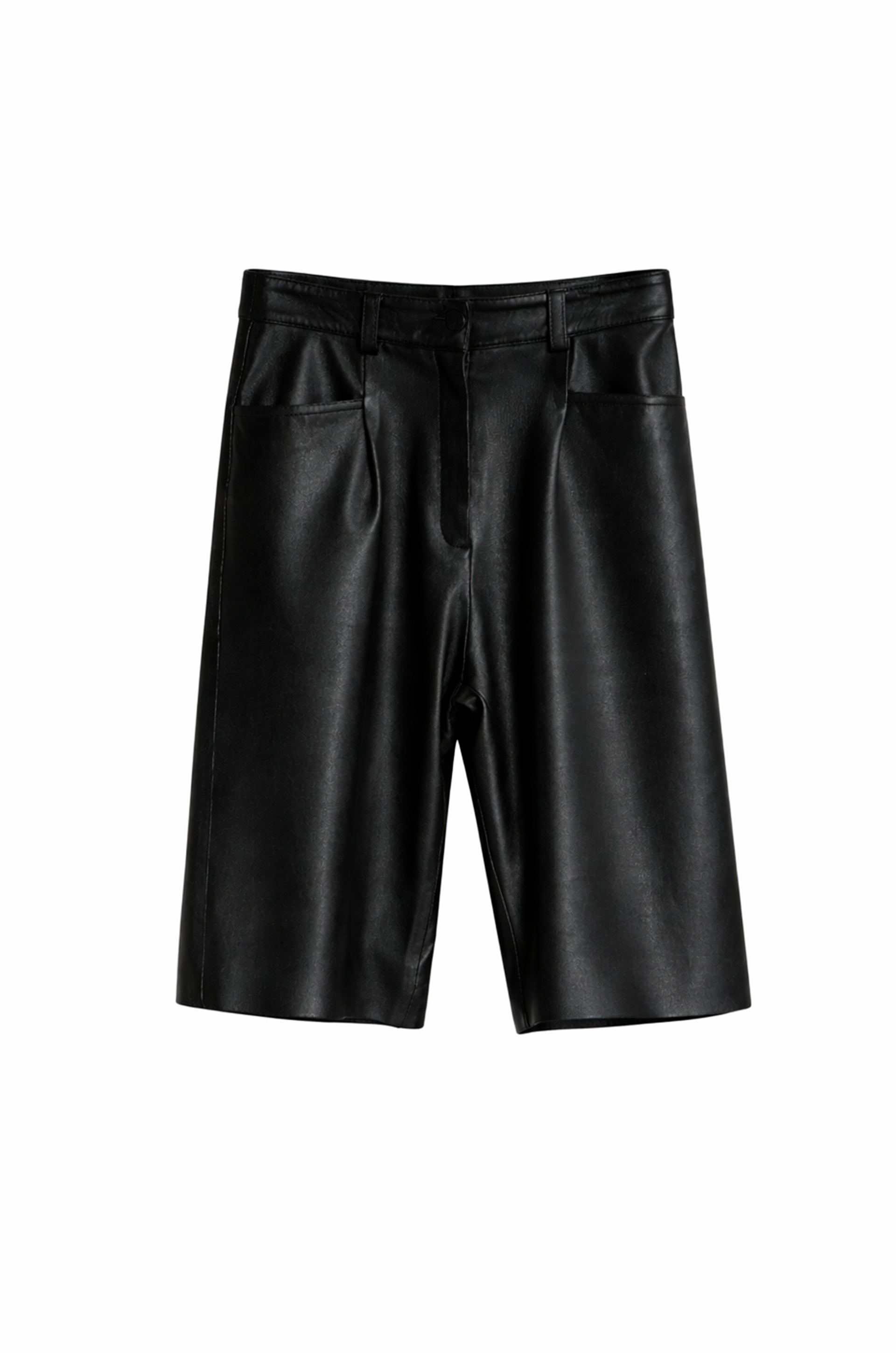 Esta bermuda de cuero combina comodidad y estilo es una prenda moderna y fácil de usar.