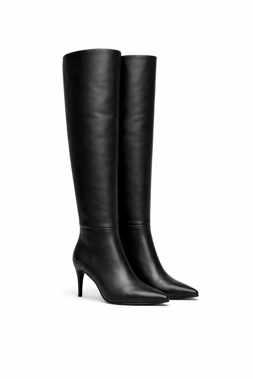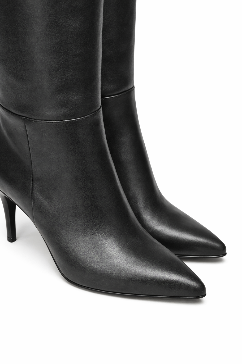 Bota bucanera de cuero con silueta estilizada y taco fino.