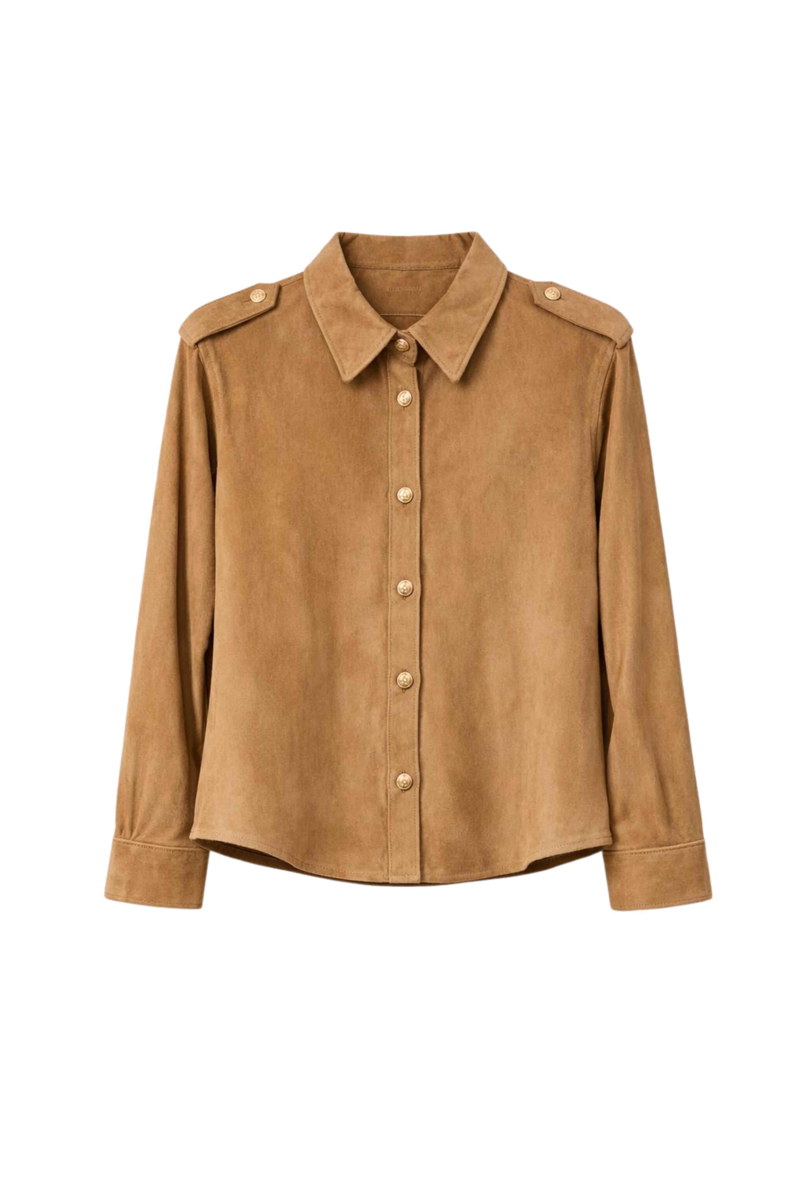 Esta camisa de cuero se destaca por su diseño simple pero con detalles que la hacen especial.