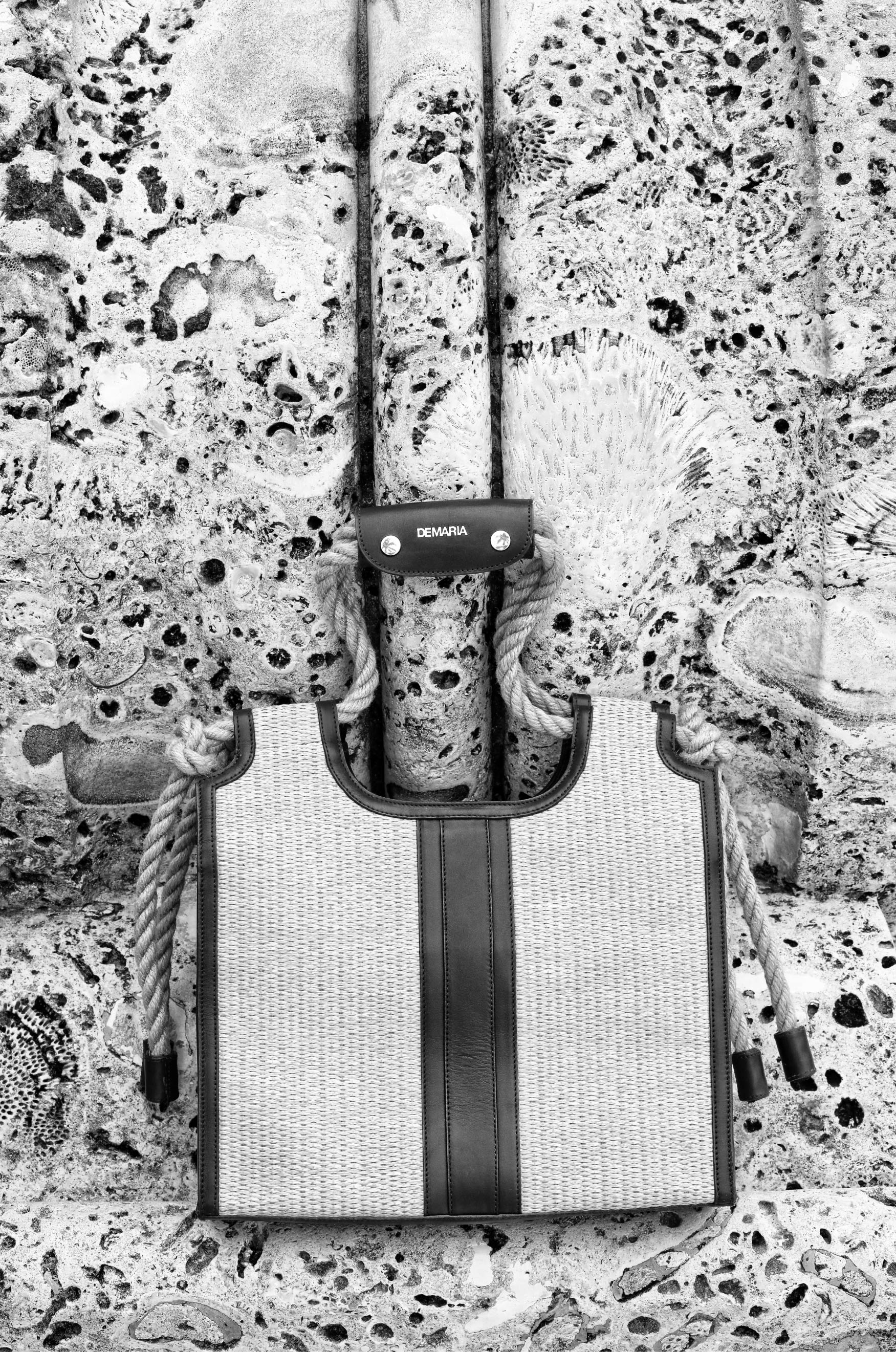Cartera de Rafia y Cuero con forreria de género 100% algodón. Ancho 32.5 cm – Alto 33 cm – Fuelle 15 cm