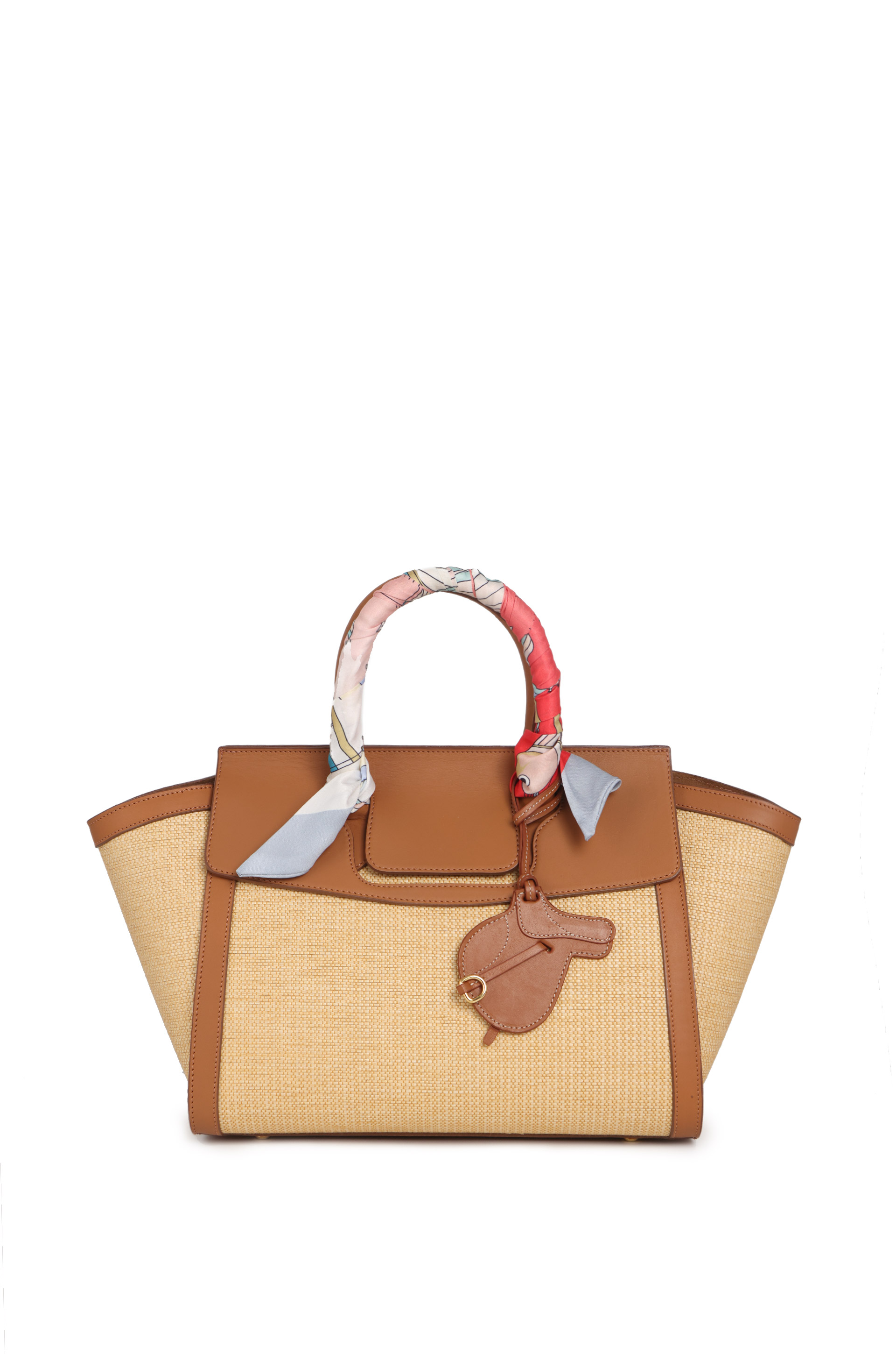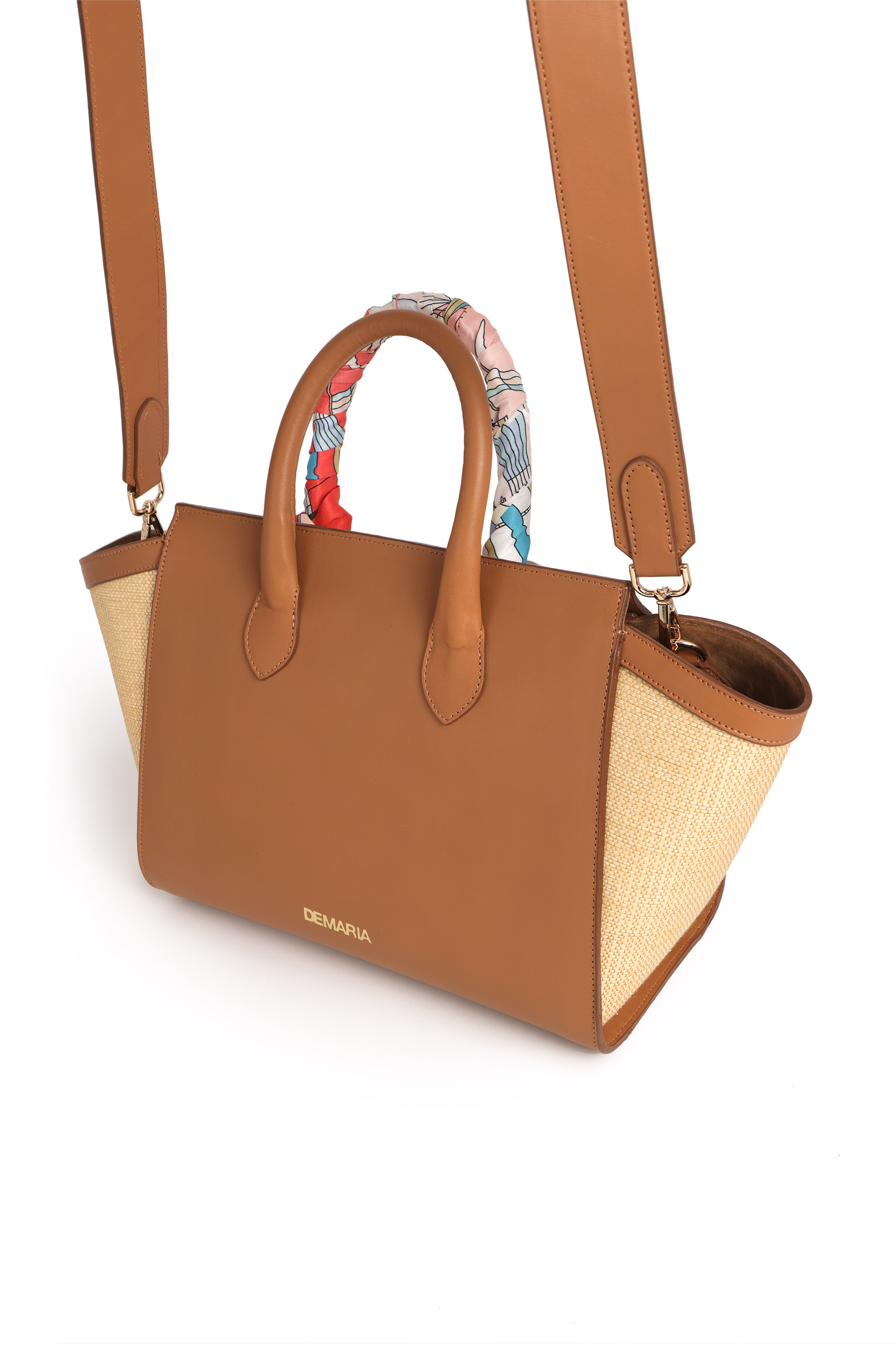 Cartera de Rafia y Cuero con forreria de género 100% algodón.