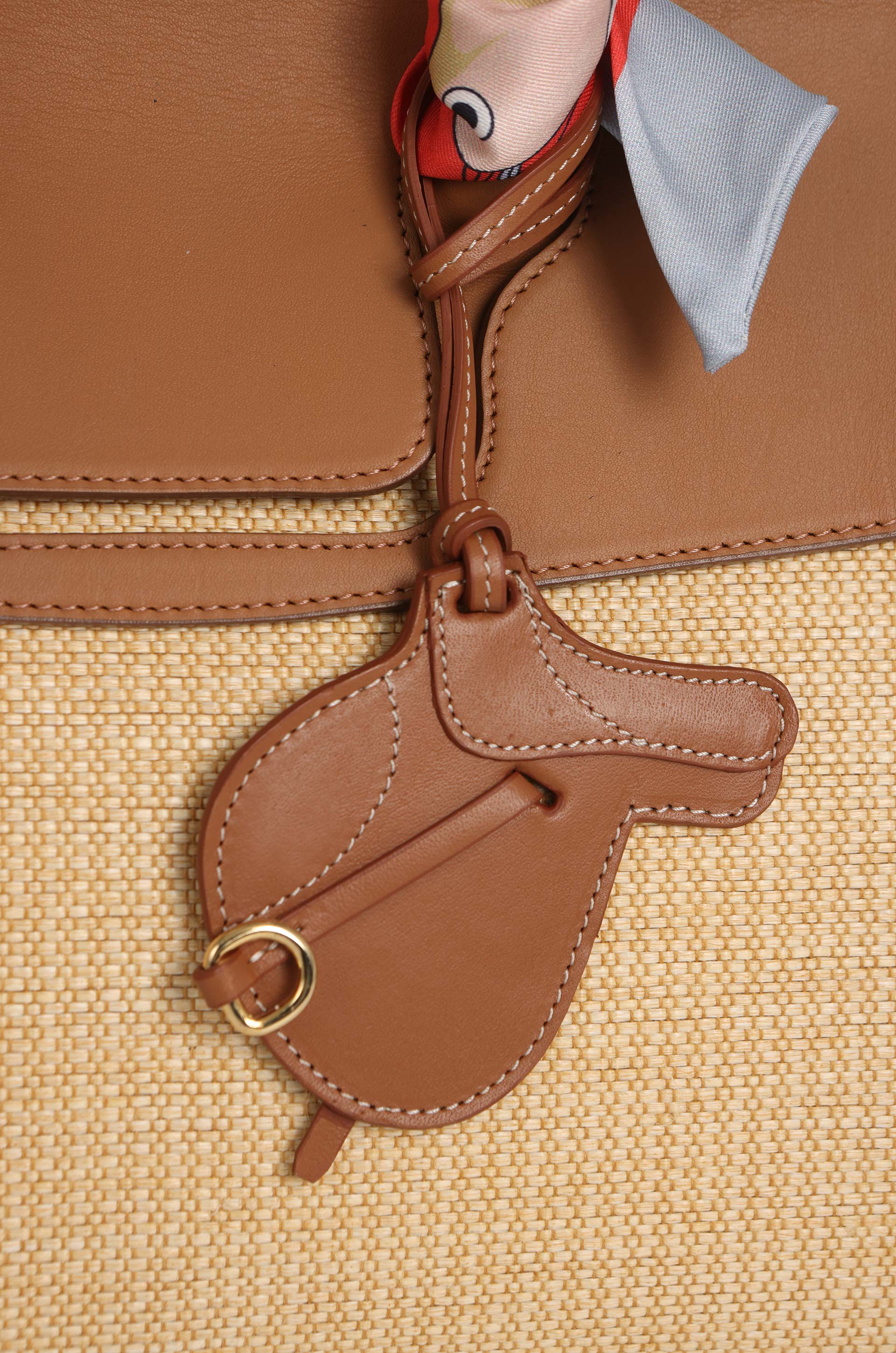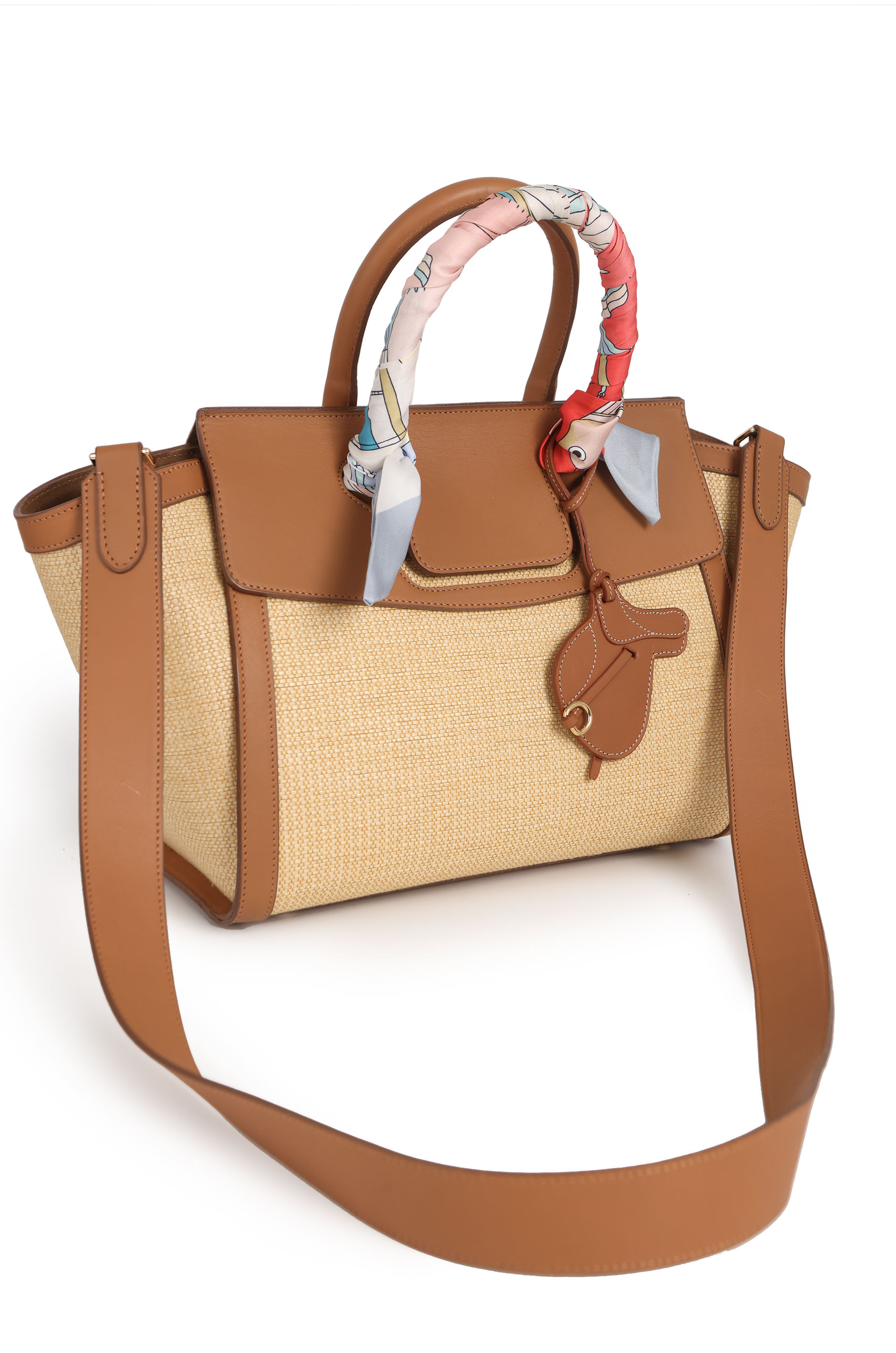 Cartera de Rafia y Cuero con forreria de género 100% algodón. Cuerpo de Cartera – Alto 24 cm Largo 30 cm Fuelle 10 cm