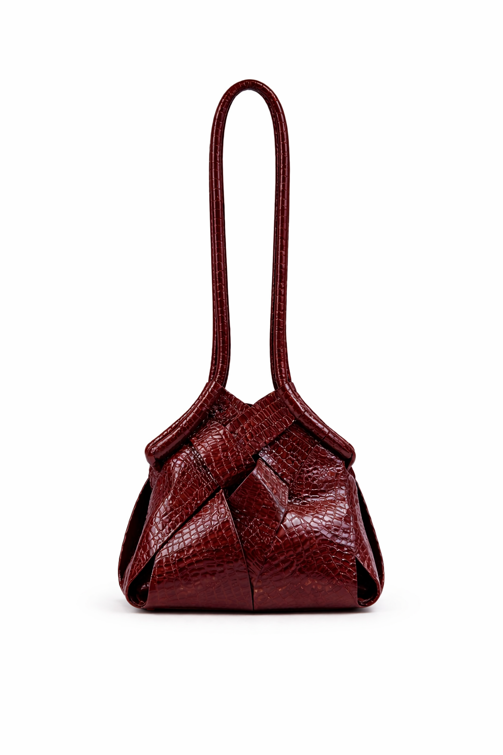 Cartera de cuero tipo croco entrelazada, combina elegancia y originalidad en cada detalle.
