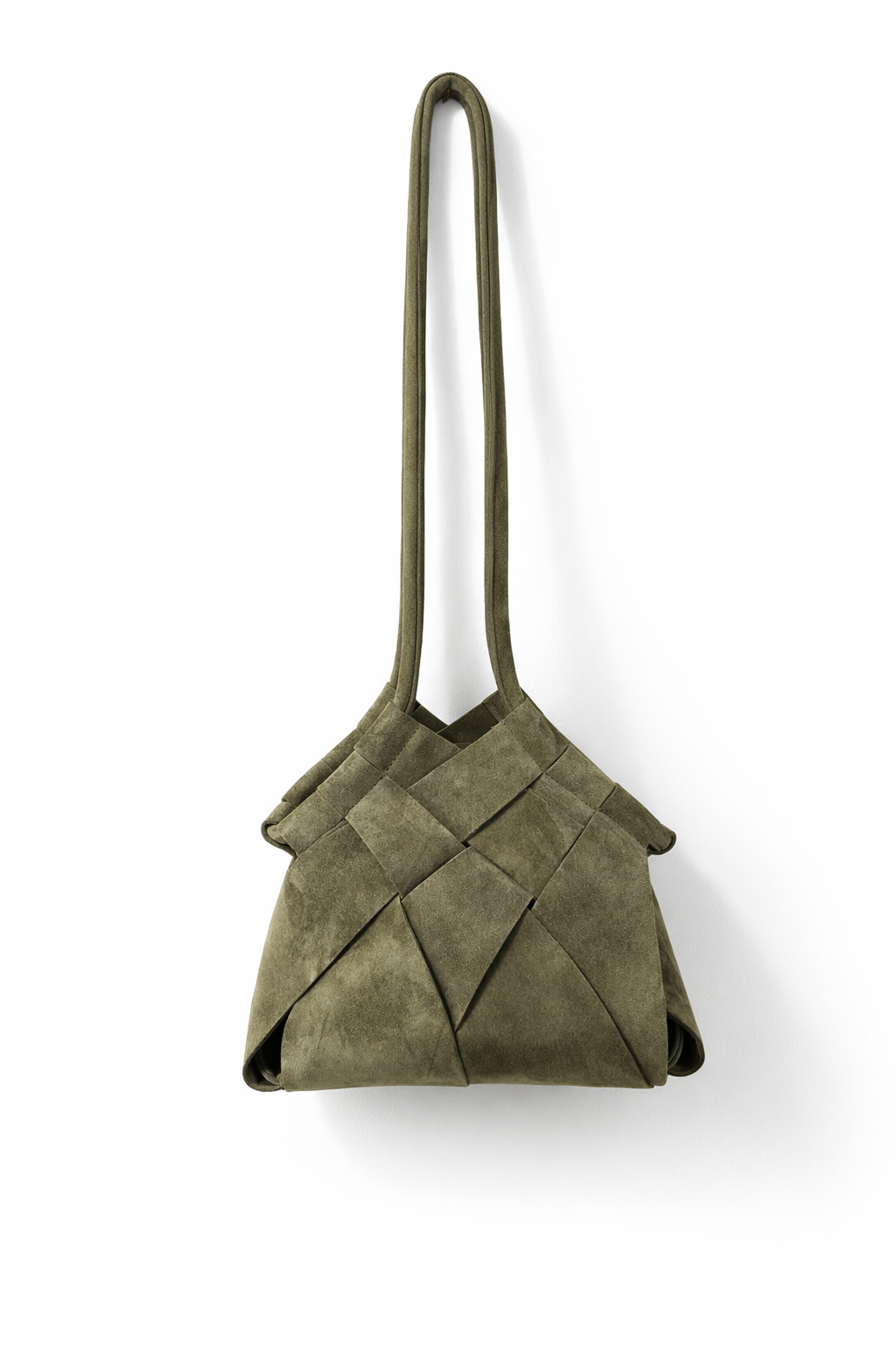 Cartera de gamuza entrelazada, combina elegancia y originalidad en cada detalle.