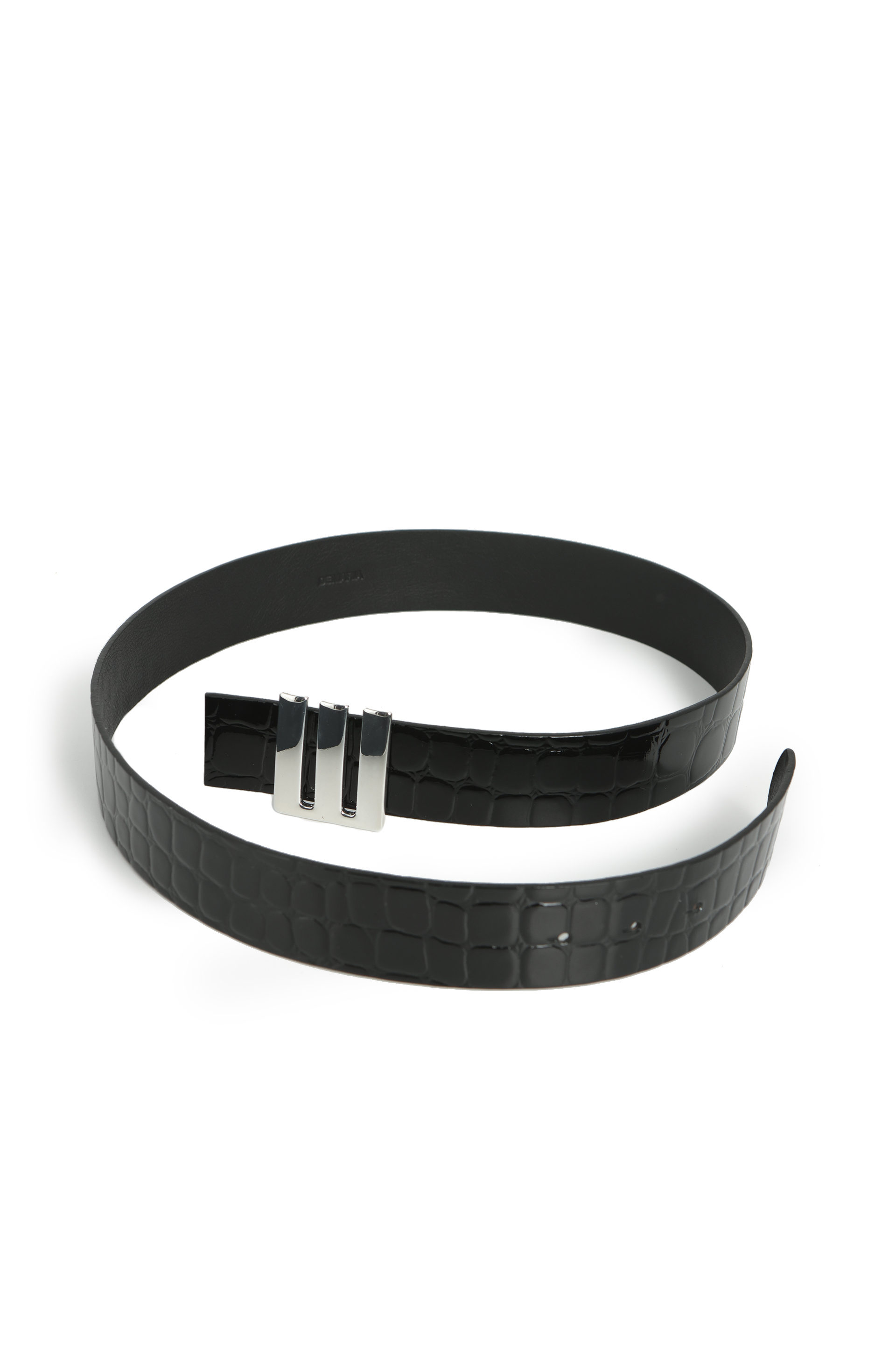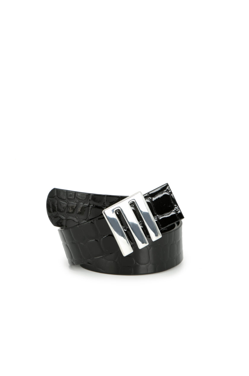 Cinturon de crocco con hebilla metalica e insignia DEMARIA.