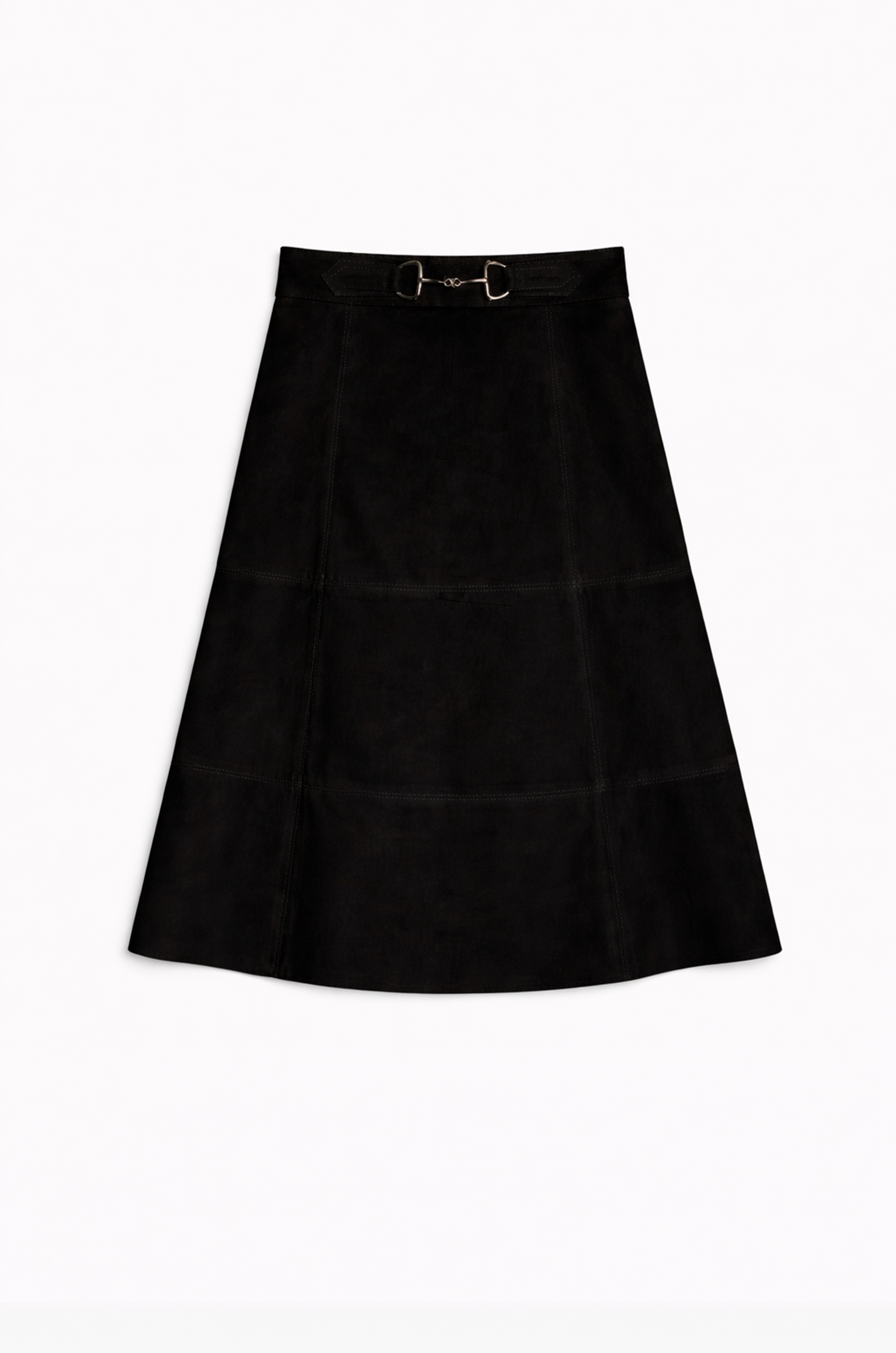 Una falda que mezcla elegancia y actitud en una sola prenda. Se destaca por su caida natural que acompaña el movimiento. El detalle del cinturón con herraje metlico en la cintura suma un toque de distintivo que eleva cualquier look.