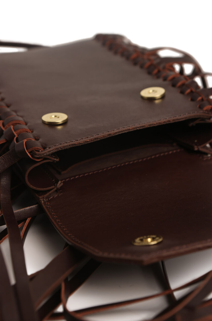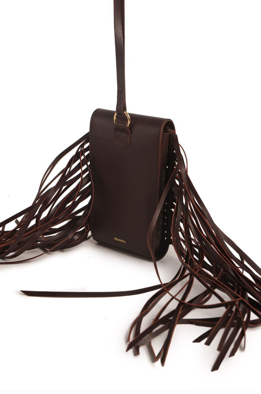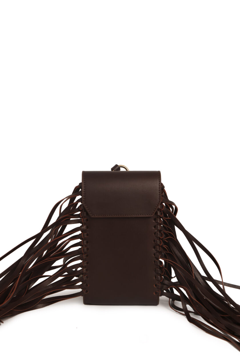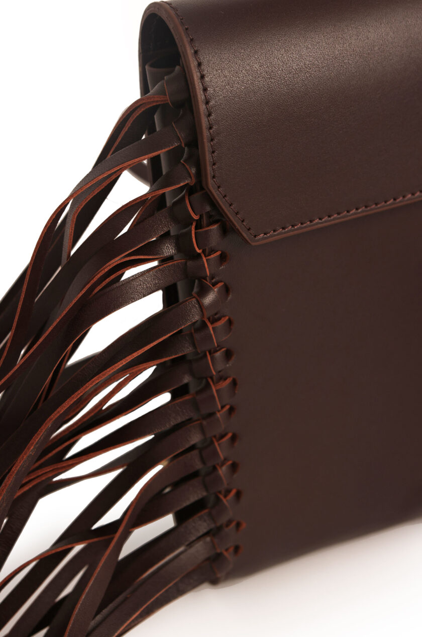 Mini bag de cuero con flecos laterales.