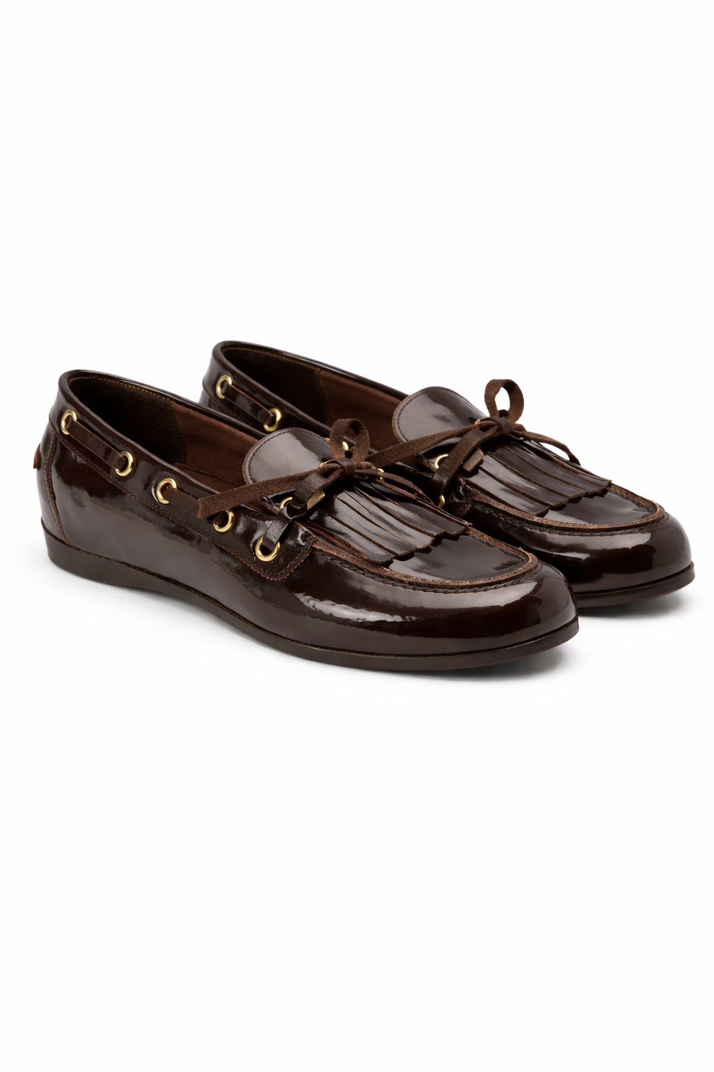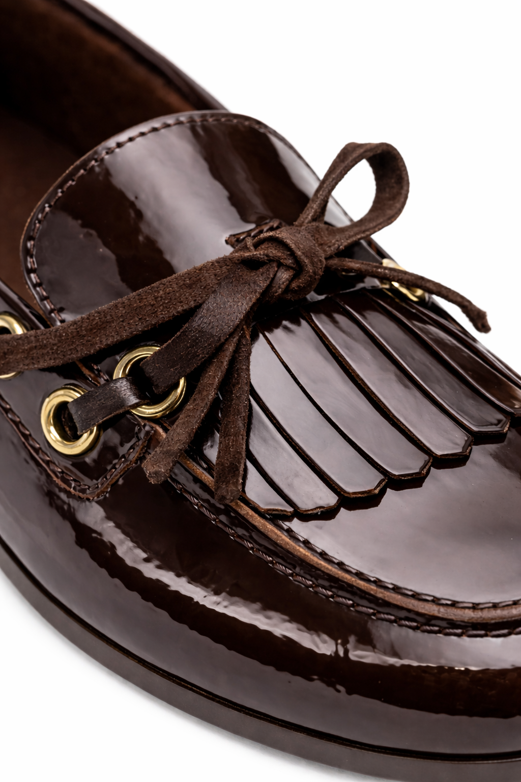 Flecos al frente y detalles metálicos que le dan ese toque canchero.