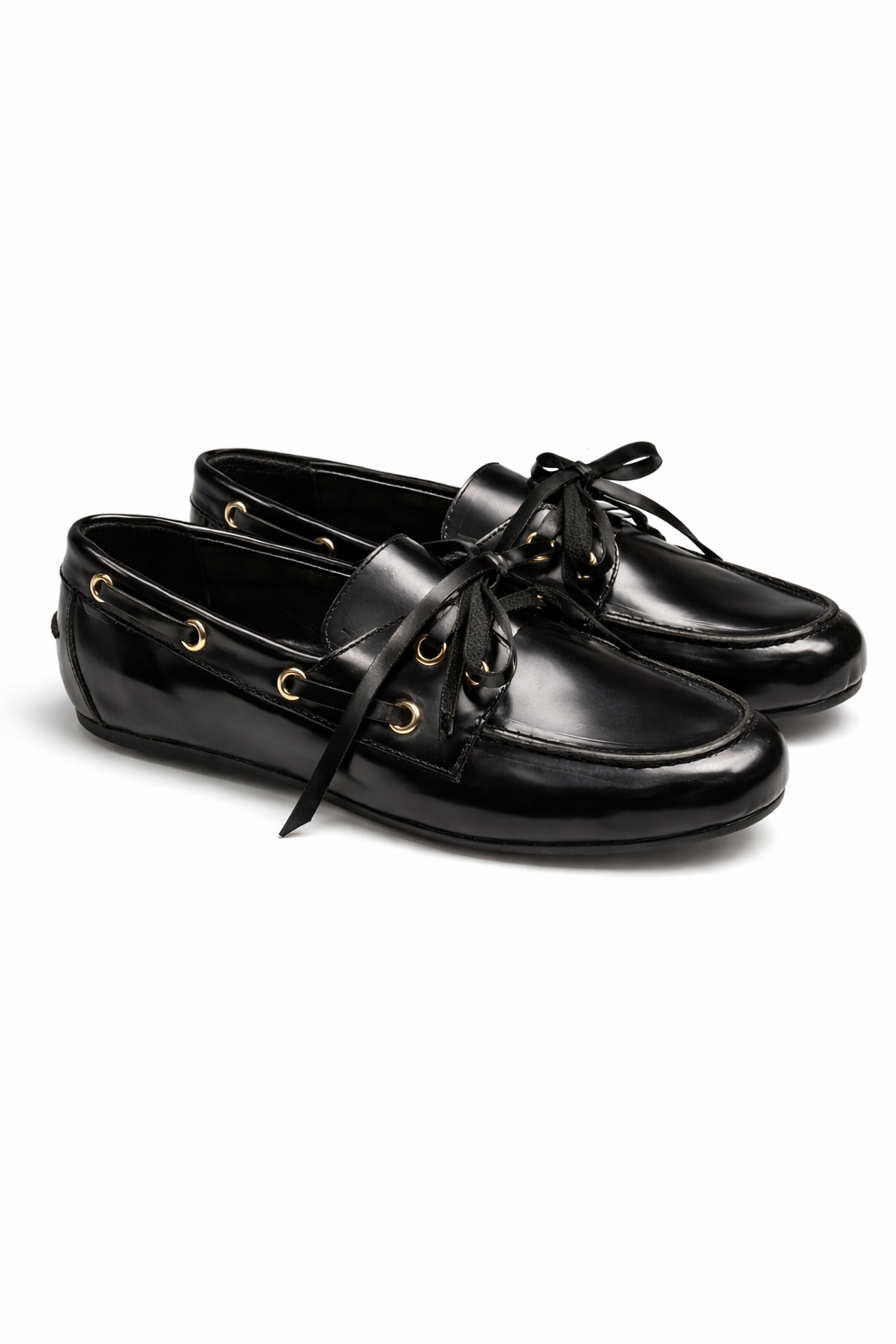 Mocasines de cuero con cordones de cuero.