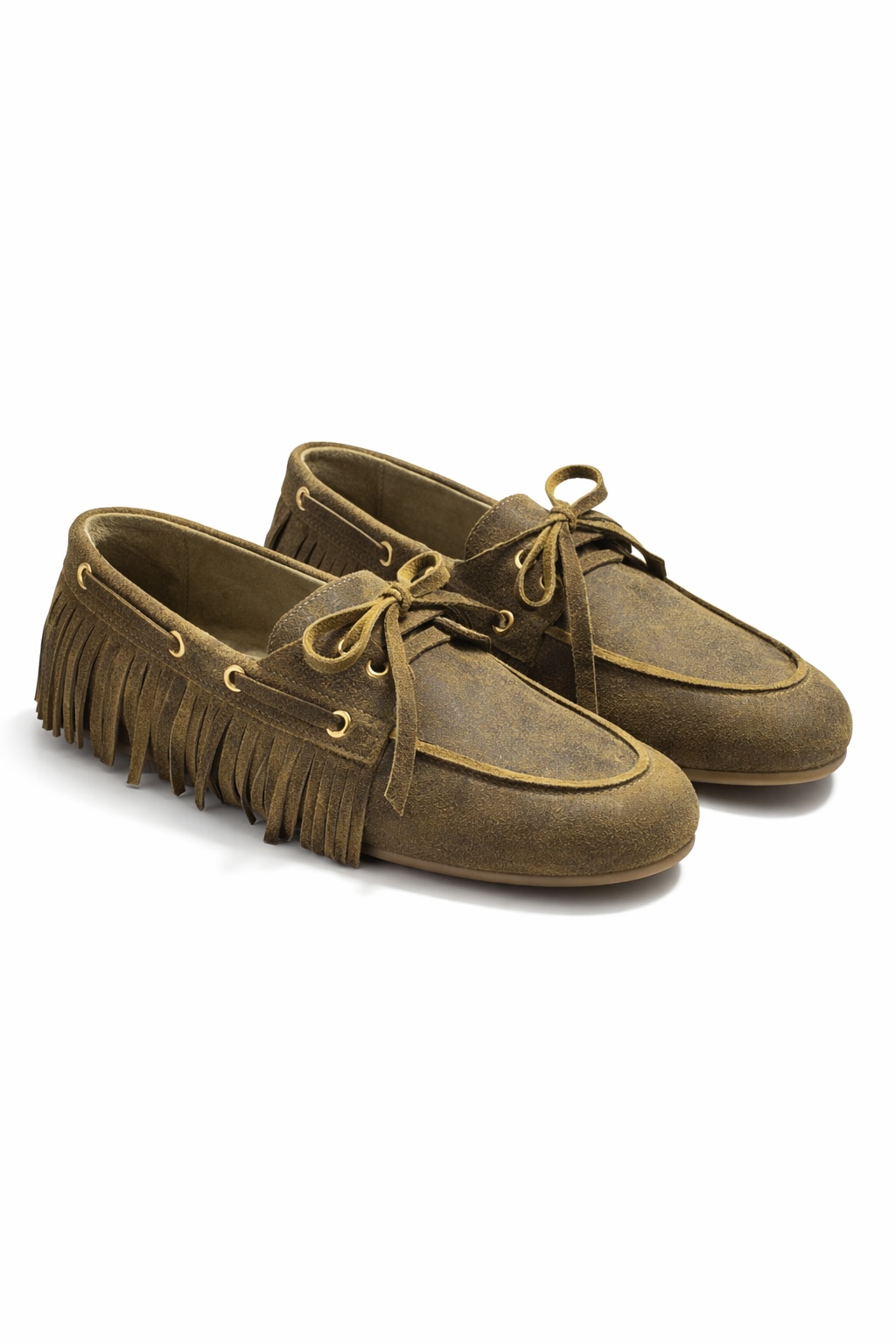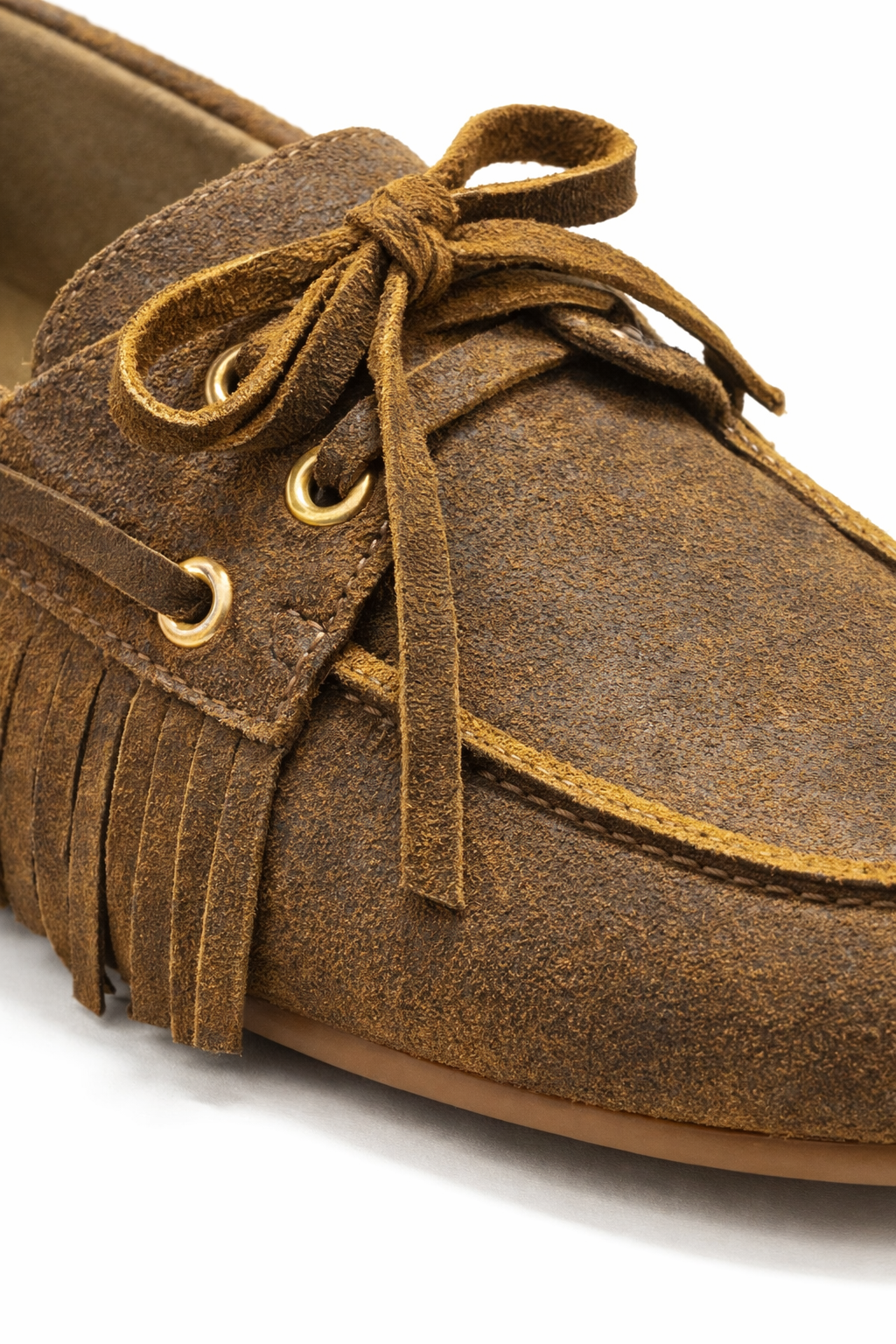 Mocasin de gamuza con flecos y detalle de cordones que aportan un estilo relajado. Comodo y canchero, es ideal para sumar un toque descontracturado con personalidad a cualquier look.