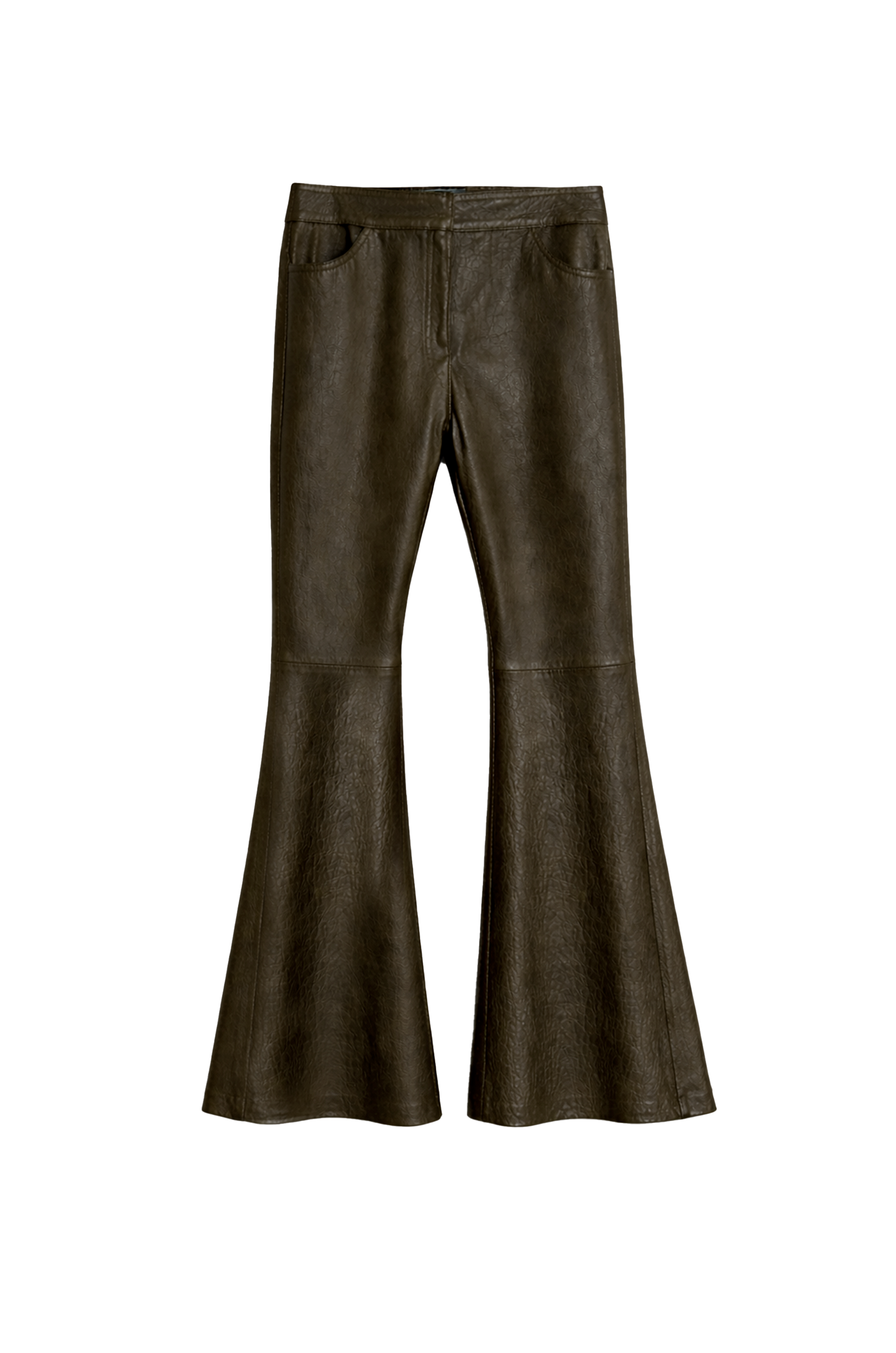 Pantalon de cuero graneado con botamanga amplia.
