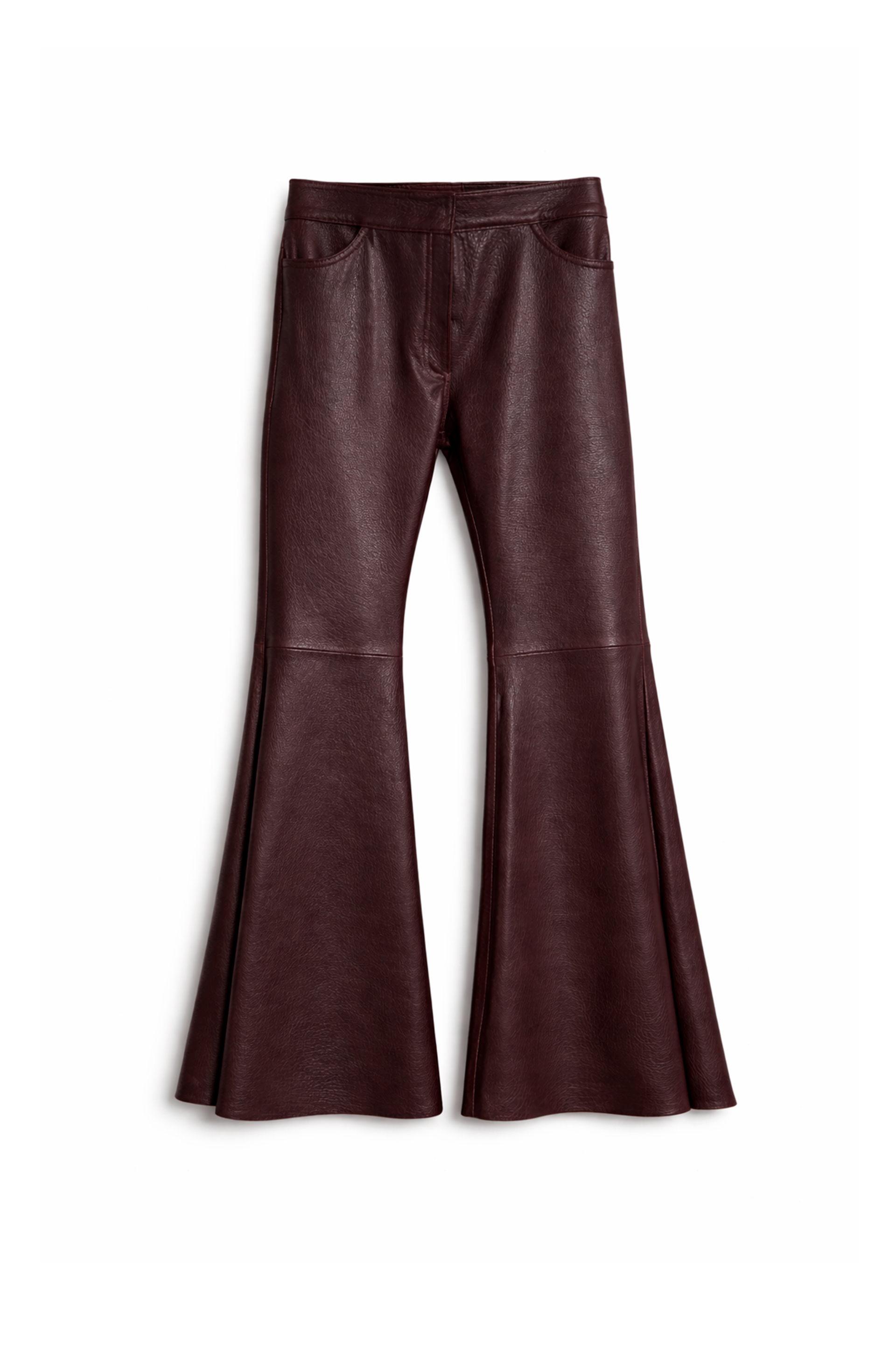 Pantalon de cuero graneado con bota manga amplia.