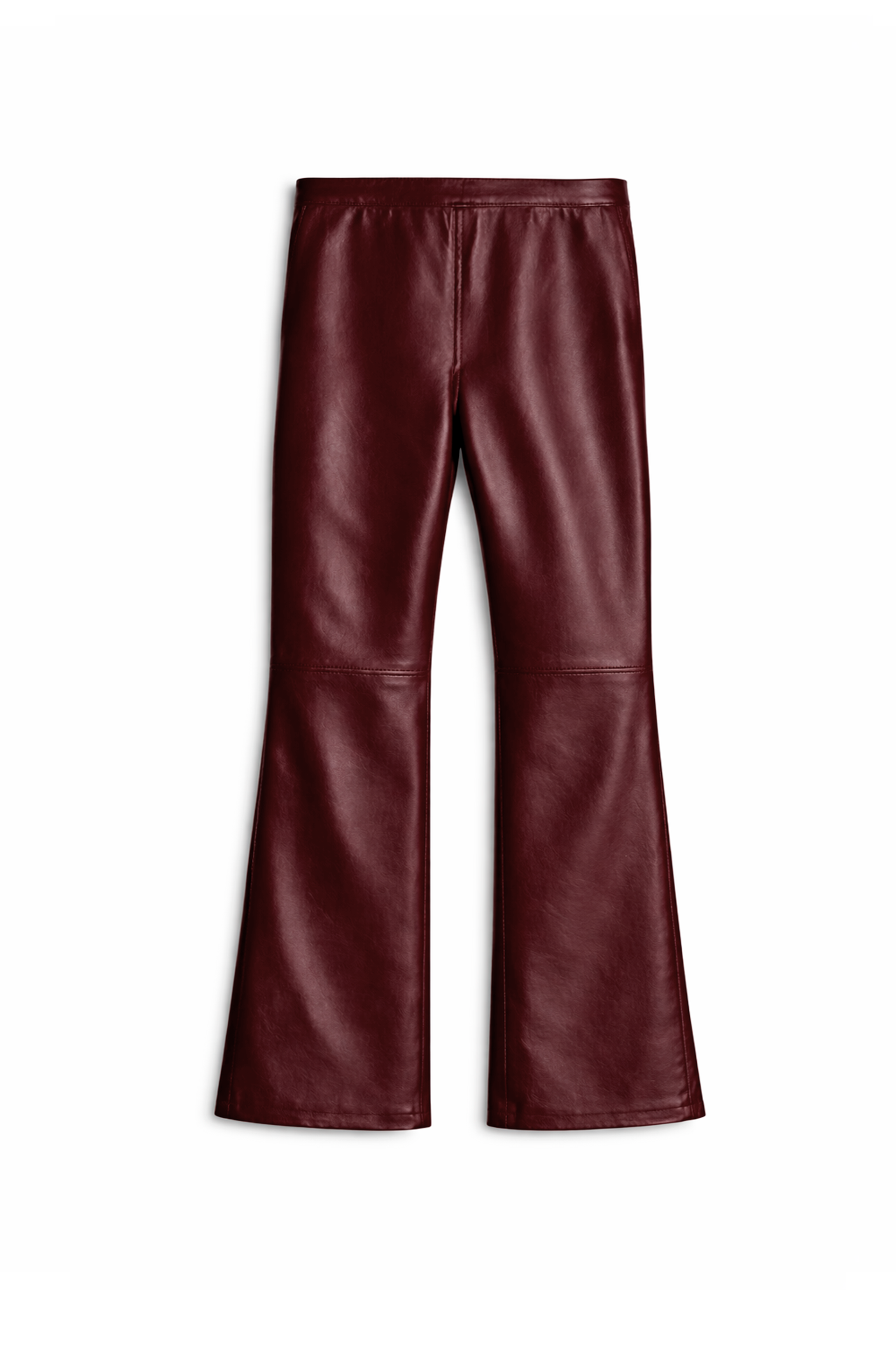 Pantalon de cuero con calce al cuerpo y leve botamanga.