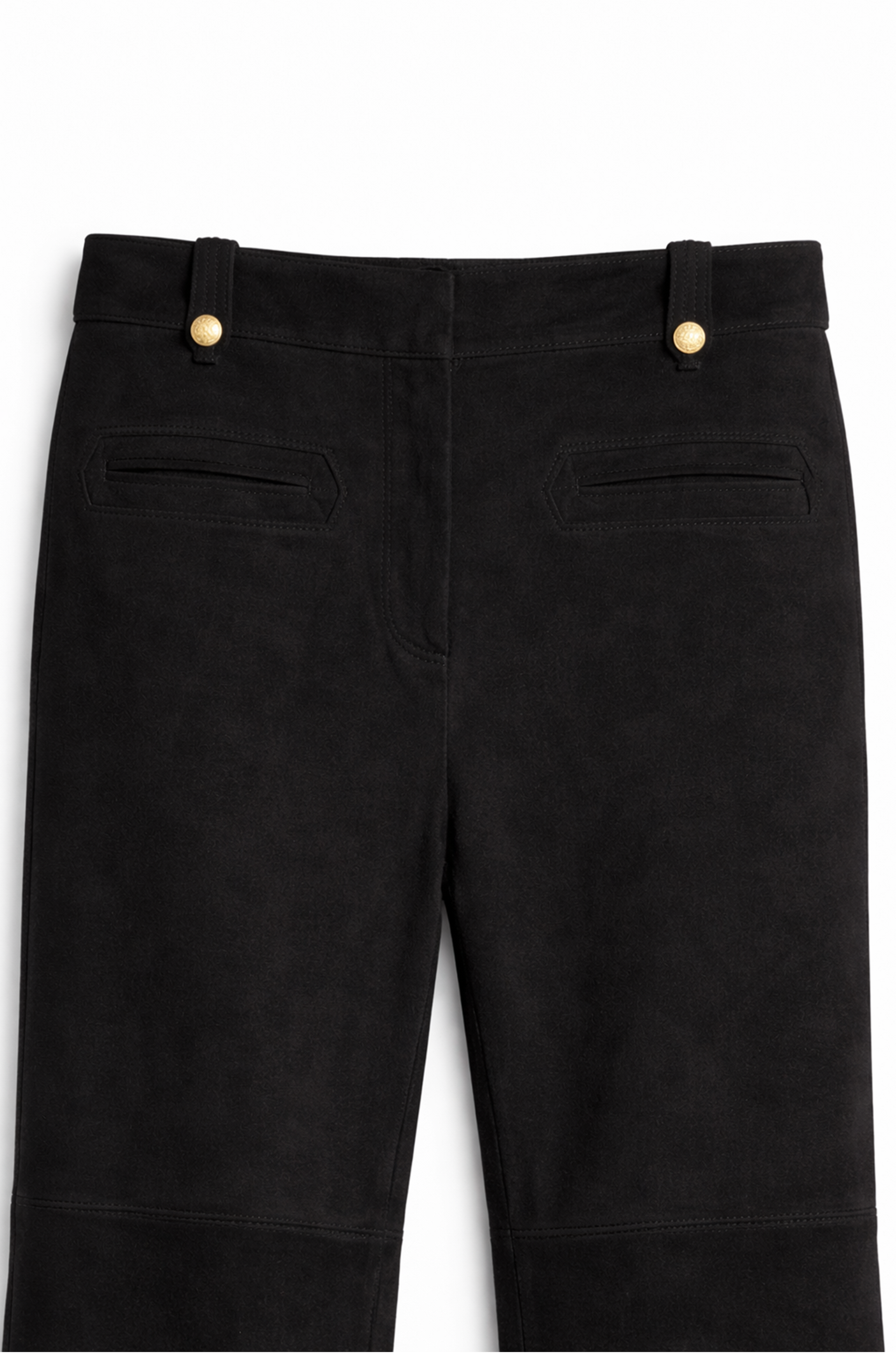 Este pantalon de gamuza es un infaltable para este invierno. Su diseño recto y limpio lo hace super versátil.