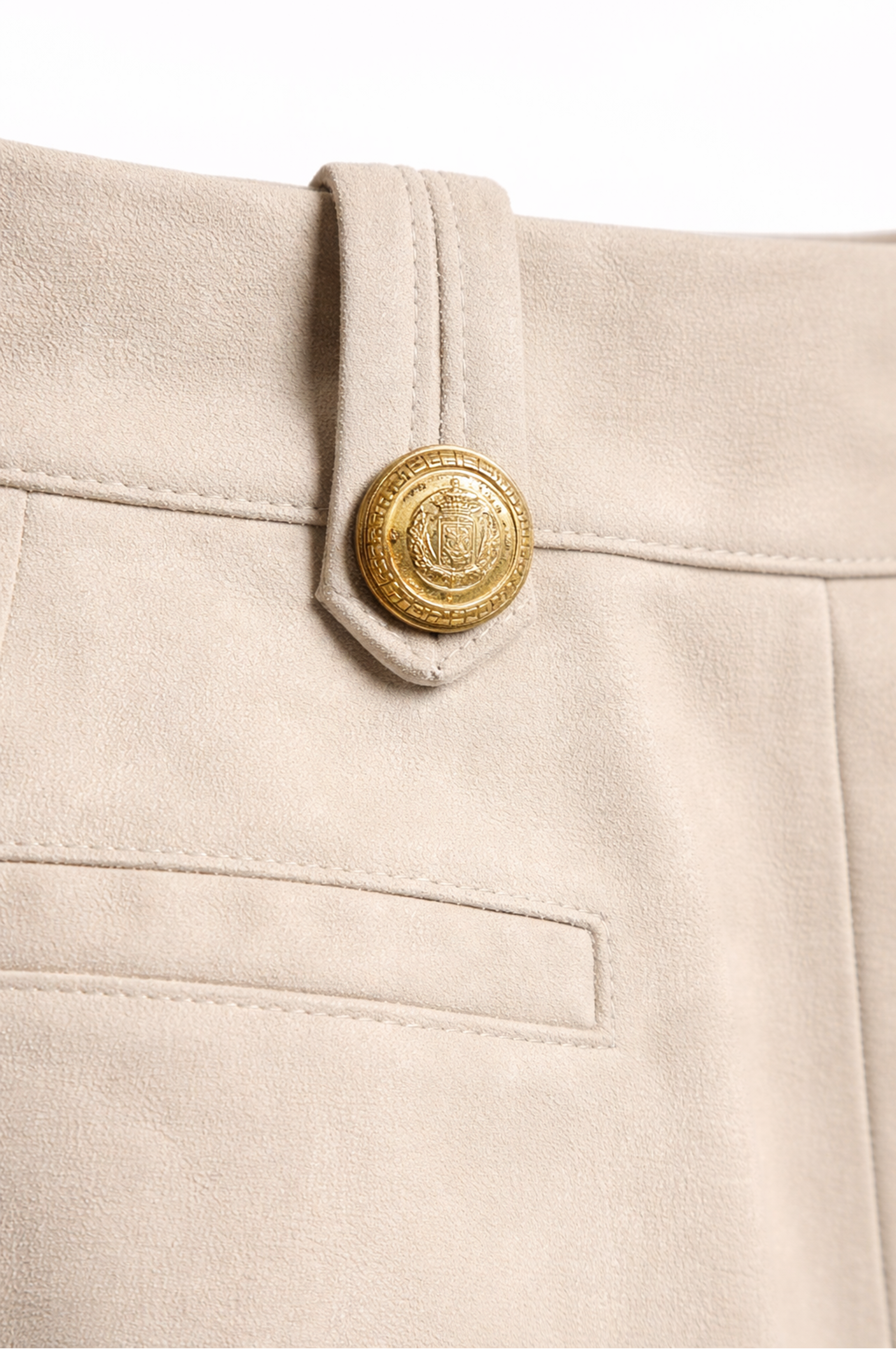 Cuenta con bolsillos traseros y detalles de botones en la cintura que suman un toque distintivo.