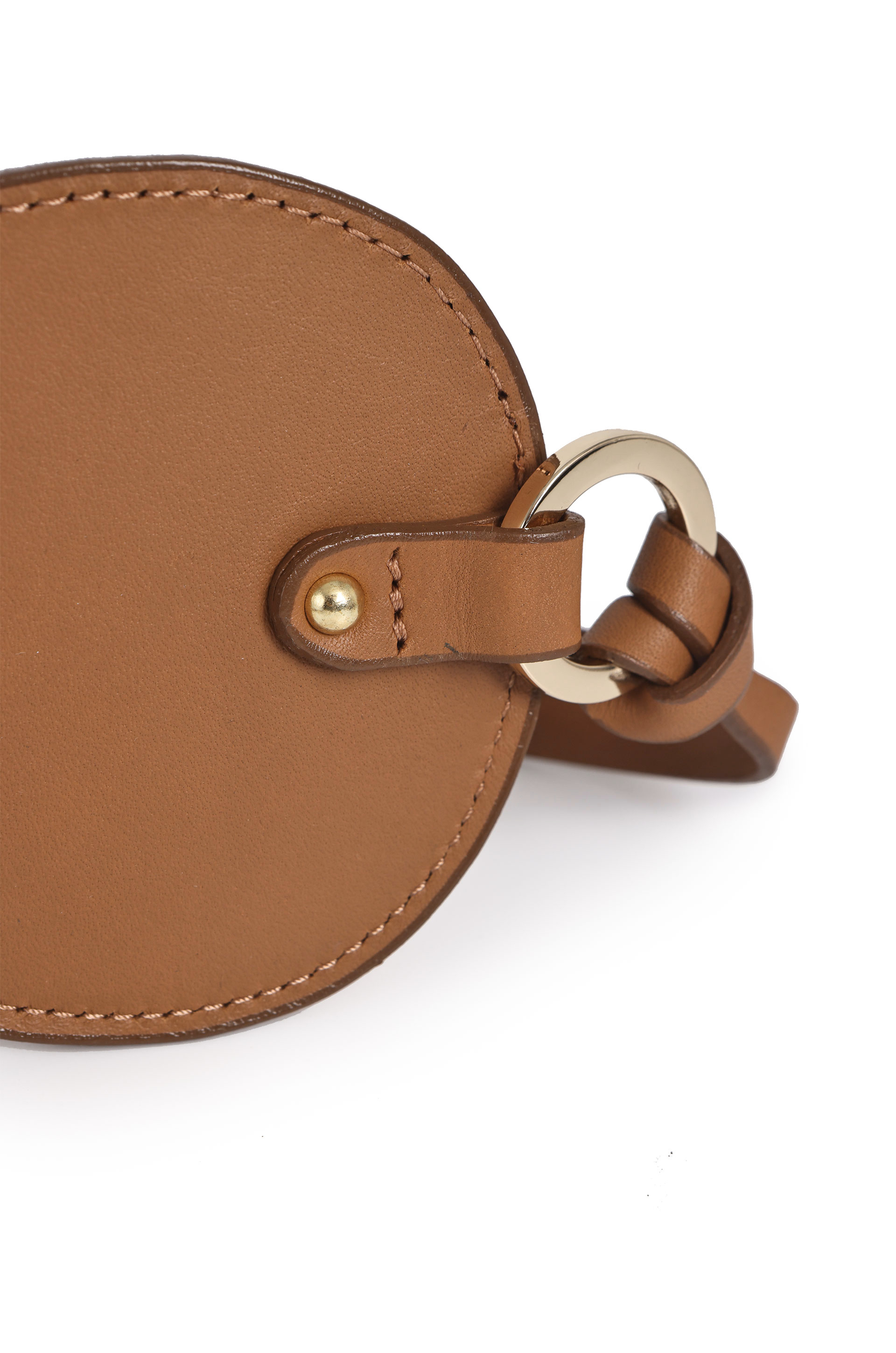 Porta anteojos de cuero con correa para colgar.