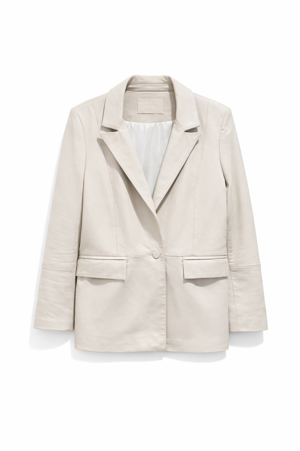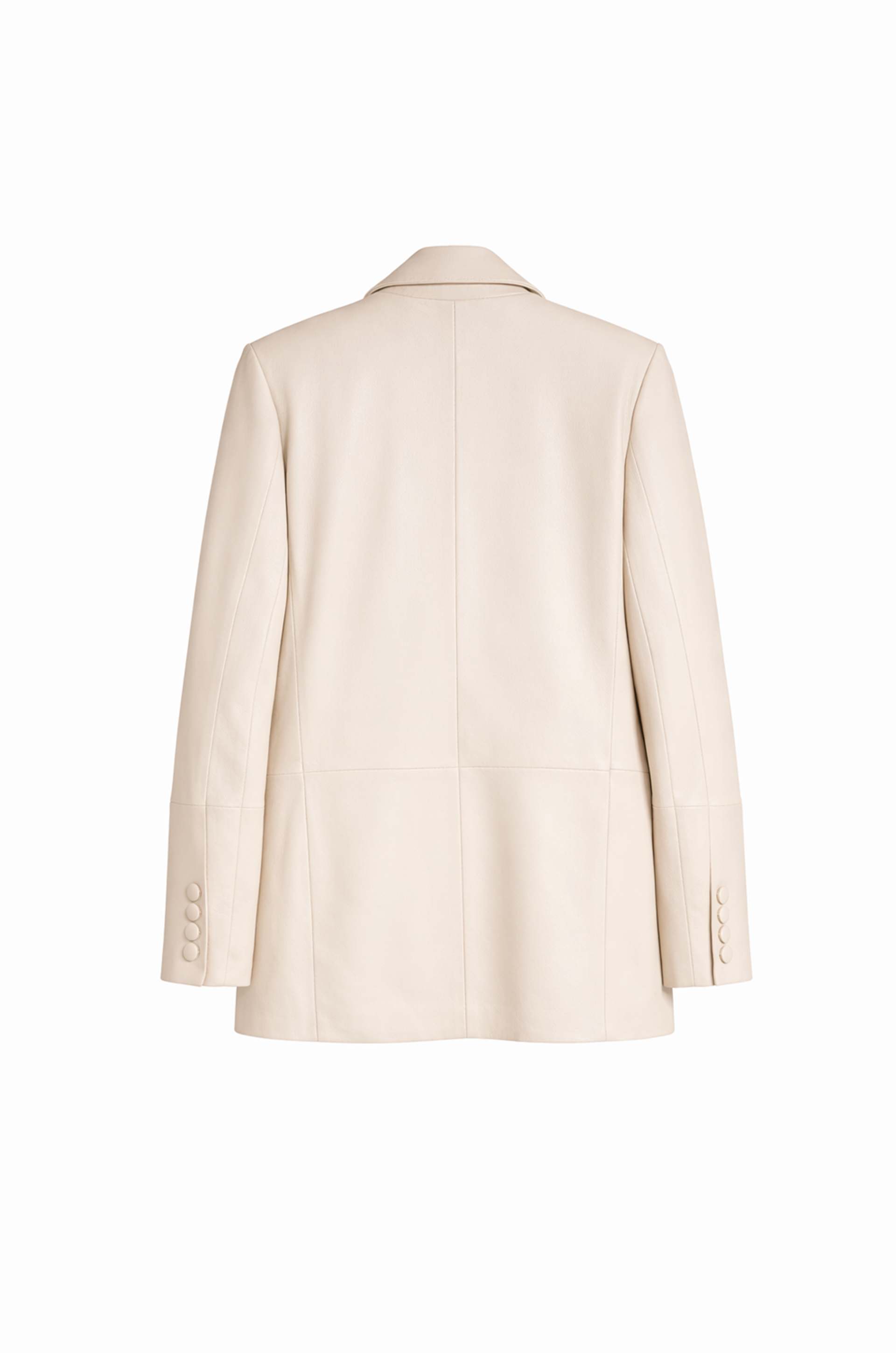 Este blazer de cuero es de esas prendas que elevan cualquier look sin esfurezo. Tiene un diseño simple y elegante con solapas amplias, botones frontal y bolsillo que le dan un toque moderno y muy canchero.