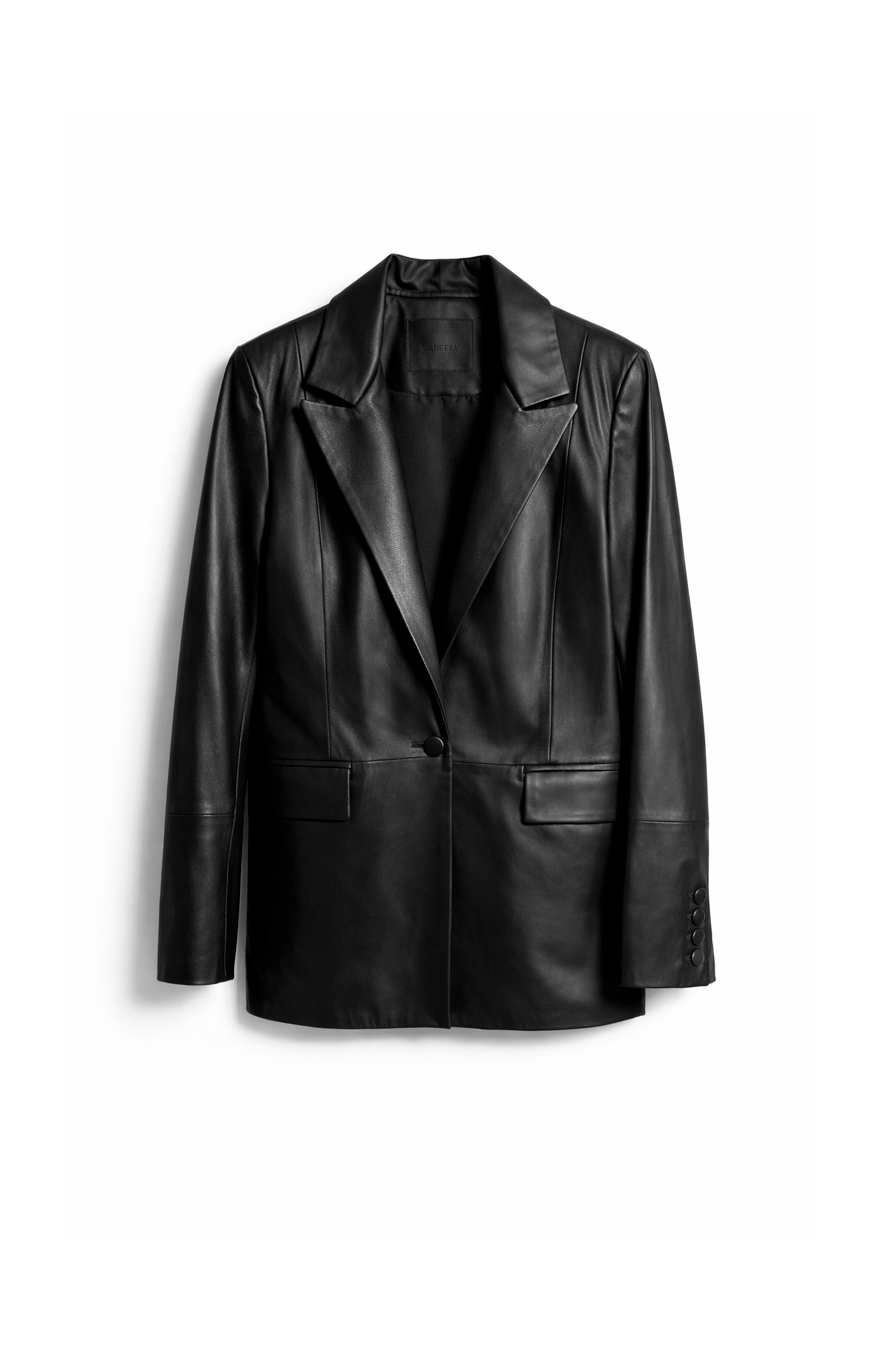 Este blazer de cuero es de esas prendas que elevan cualquier look sin esfurezo. Tiene un diseño simple y elegante con solapas amplias, botones frontal y bolsillo que le dan un toque moderno y muy canchero.