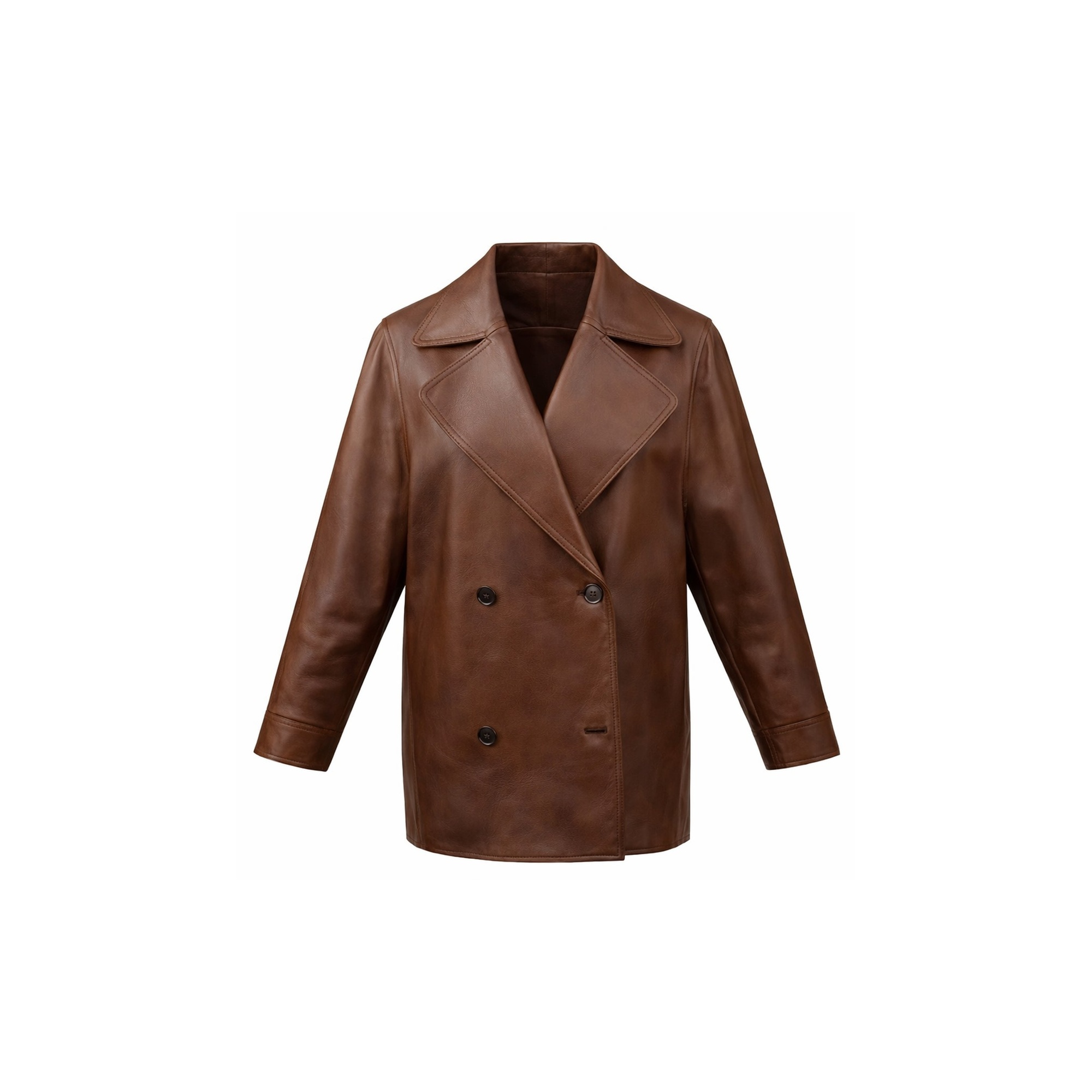 Este blazer de cuero es de esas prendas que levantan cualquier look. Tiene un diseño cruzado con botones y solapas amplias que le dan un aire elegante pero moderno al mismo tiempo.