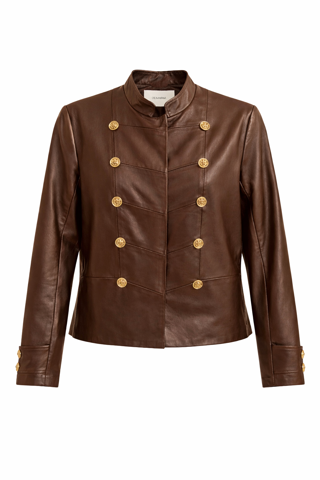 Saco de cuero con diseño estructurado y detalles de botones que aportan carácter. De lineas definidas y calce impecable, combina elegancia y actitud en una prenda sofisticada y canchera. Ideal para elevar cualquier look.