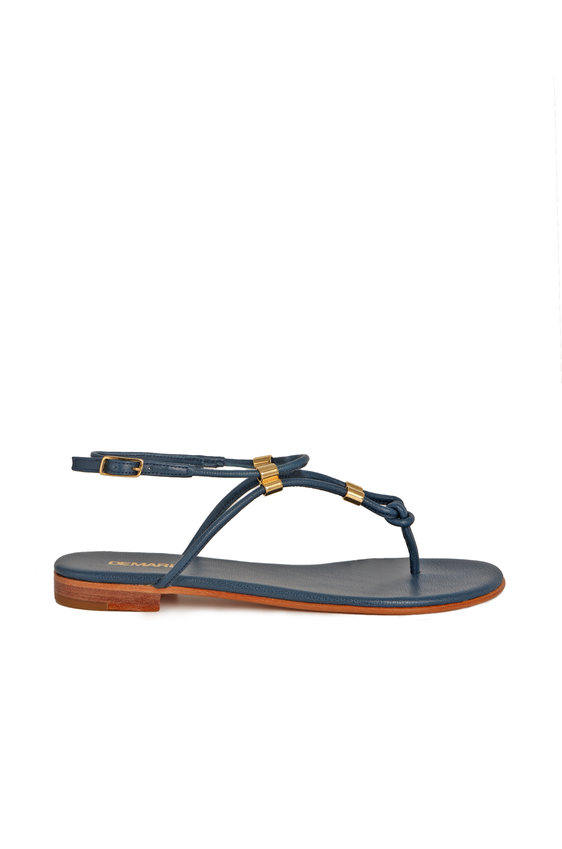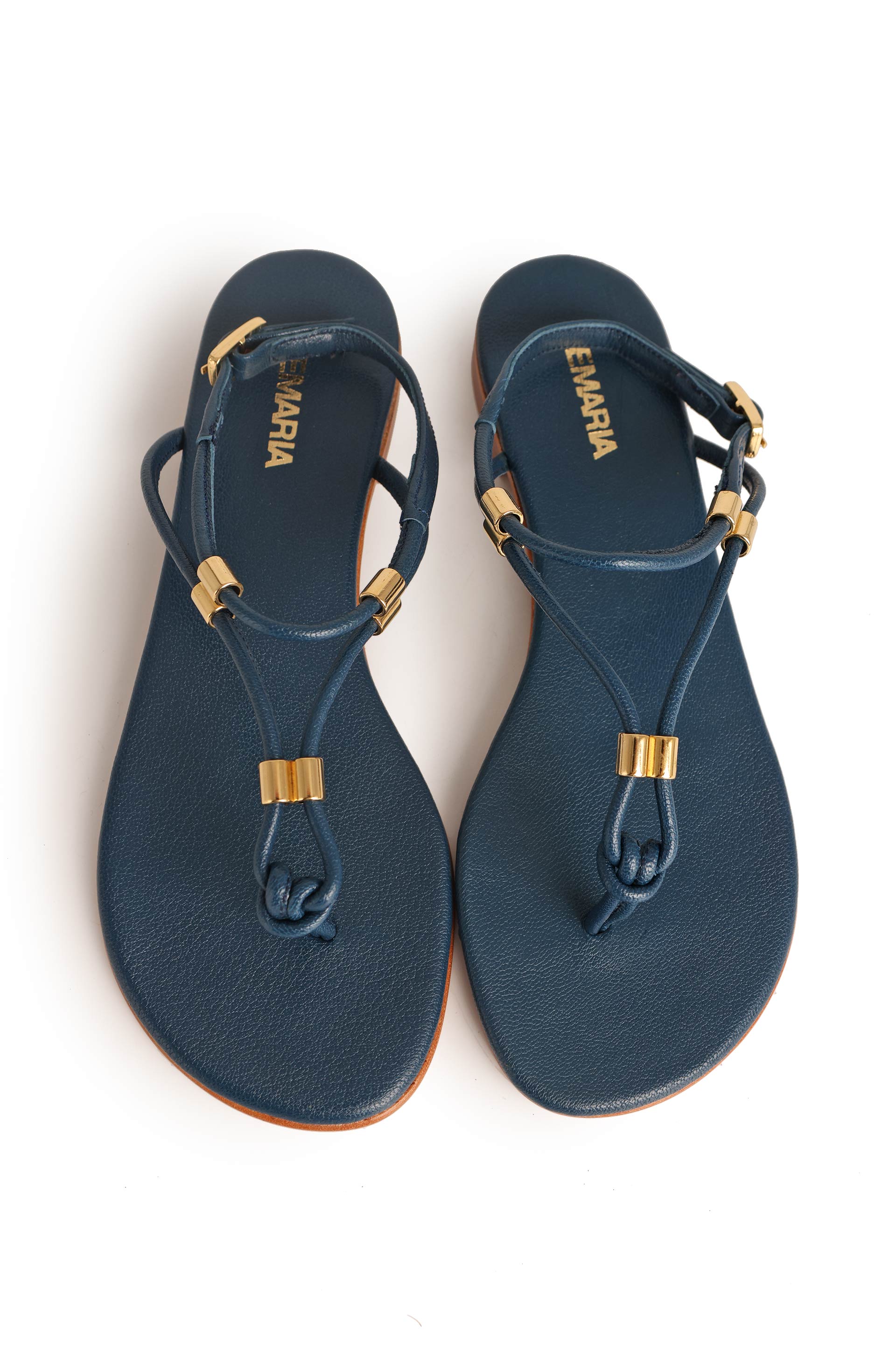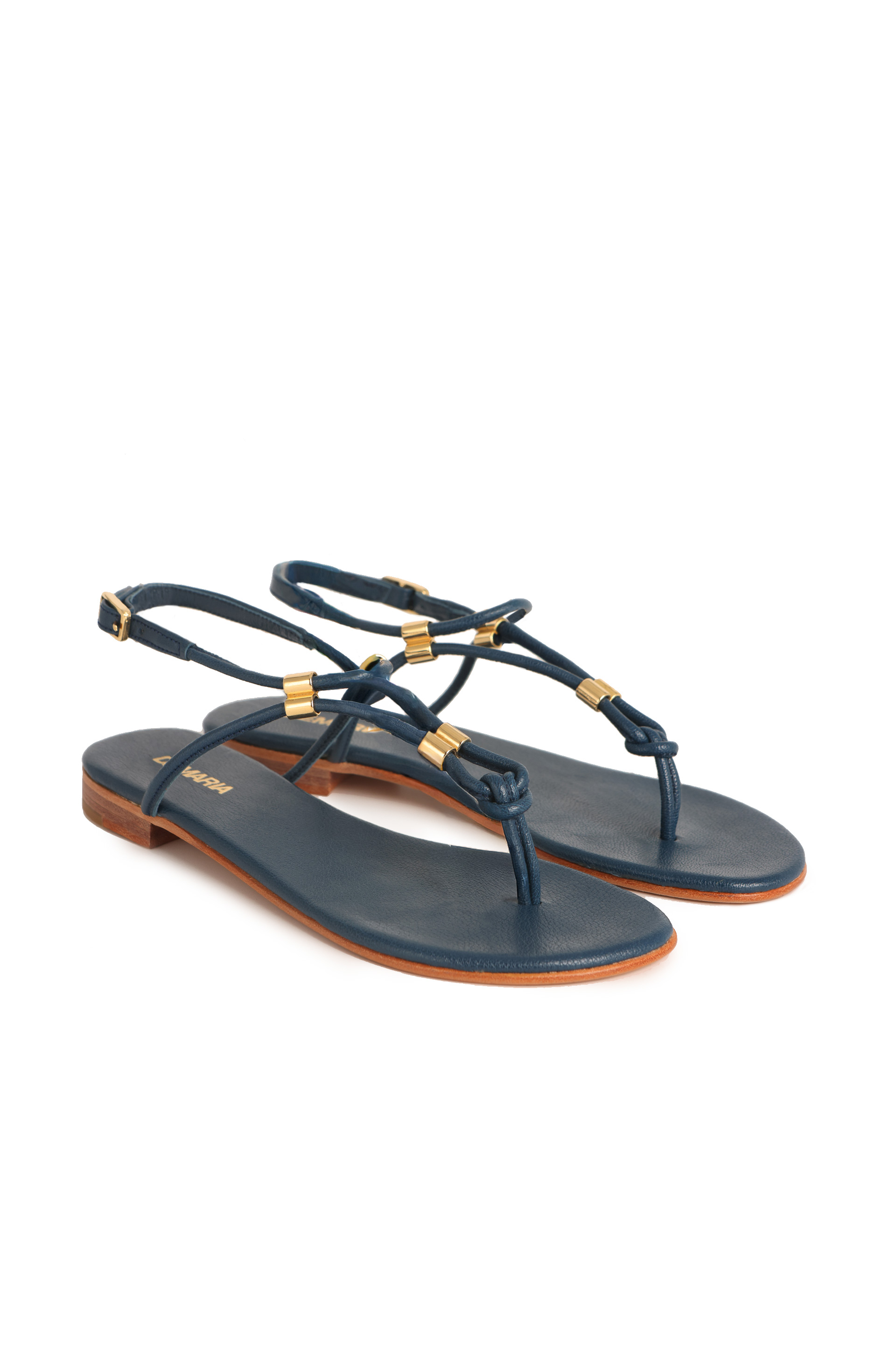 Sandalia de cuero con tiras finas y detalle de apliques dorados. Forrada 100% en cuero.