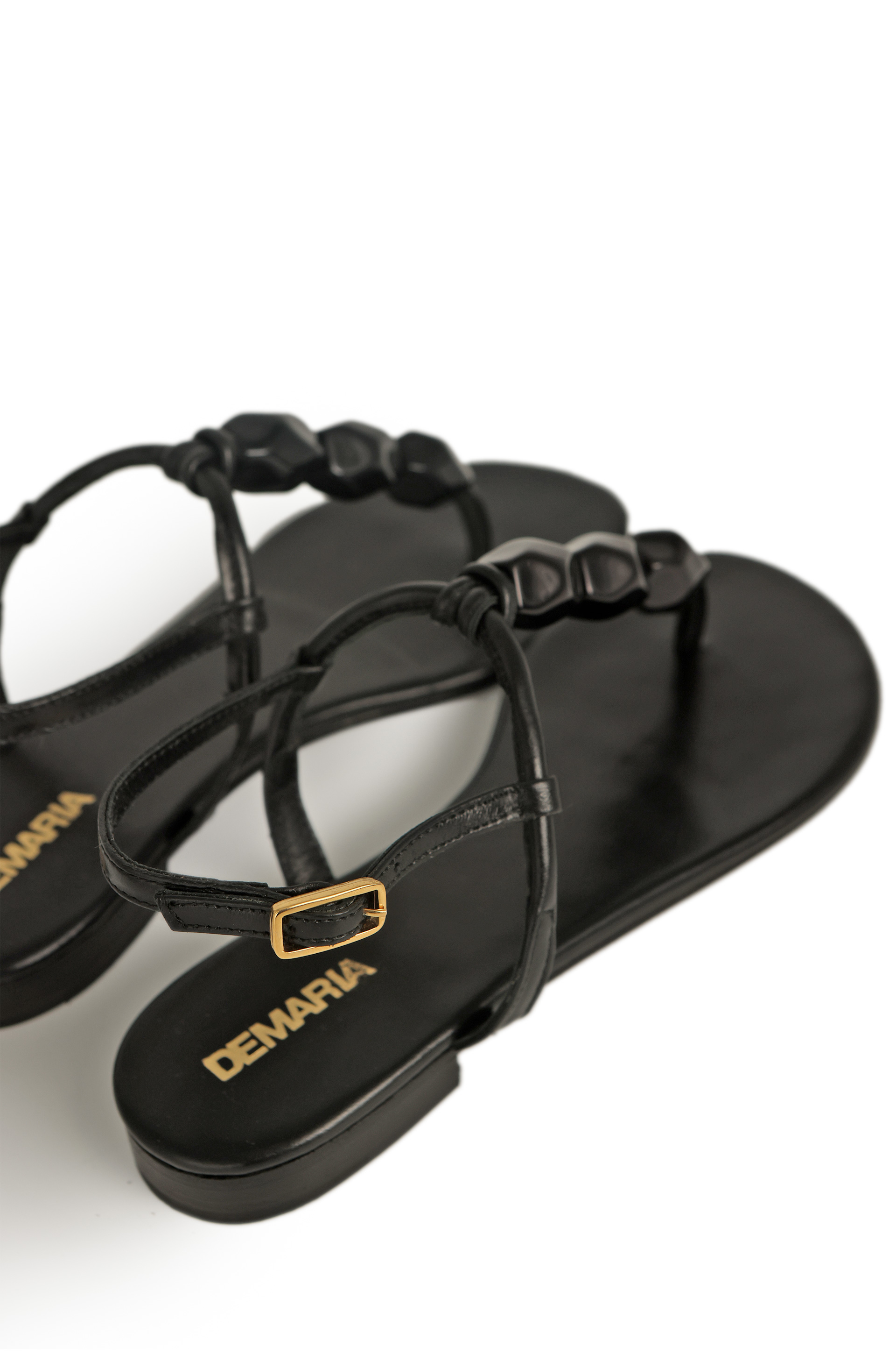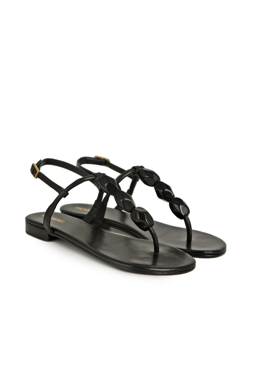 Sandalias de cuero con piedrones de resina.