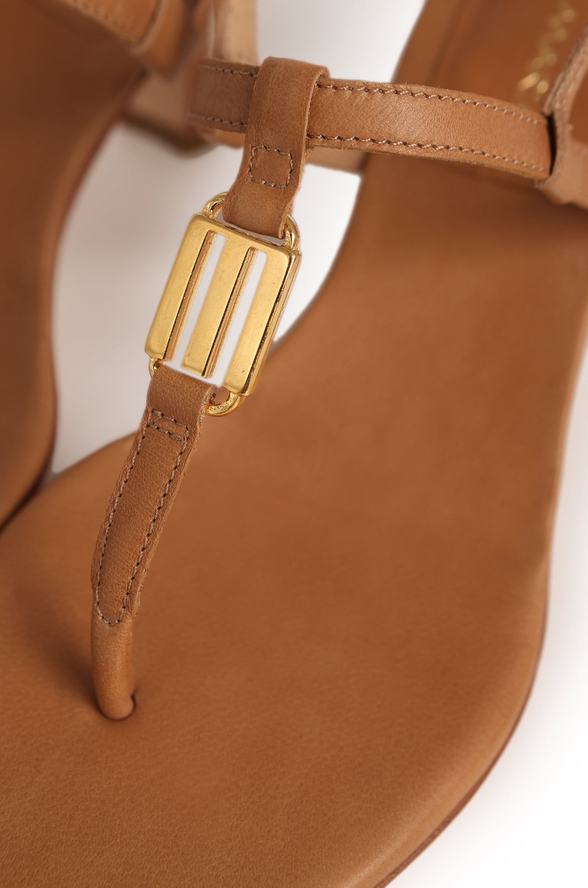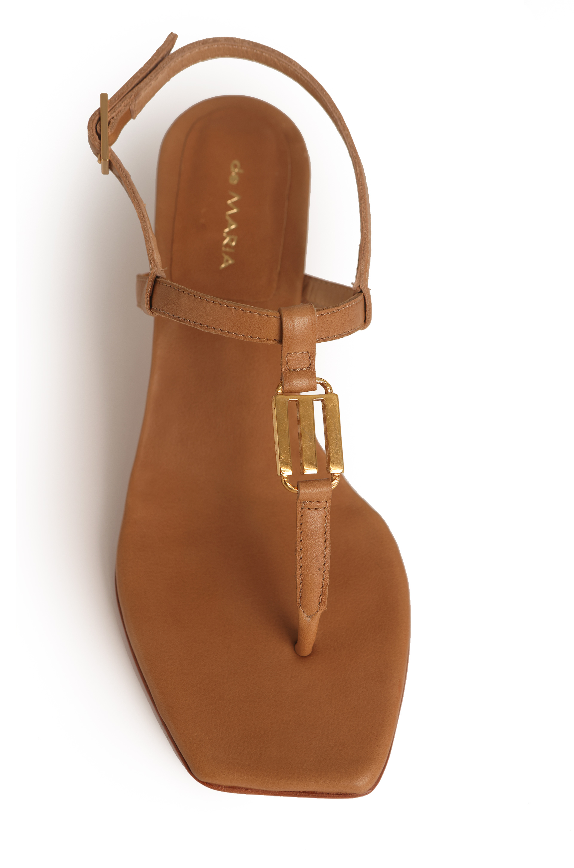 Sandalia de cuero con tiras finas y detalle de nuestra insignia de DEMARIA.
