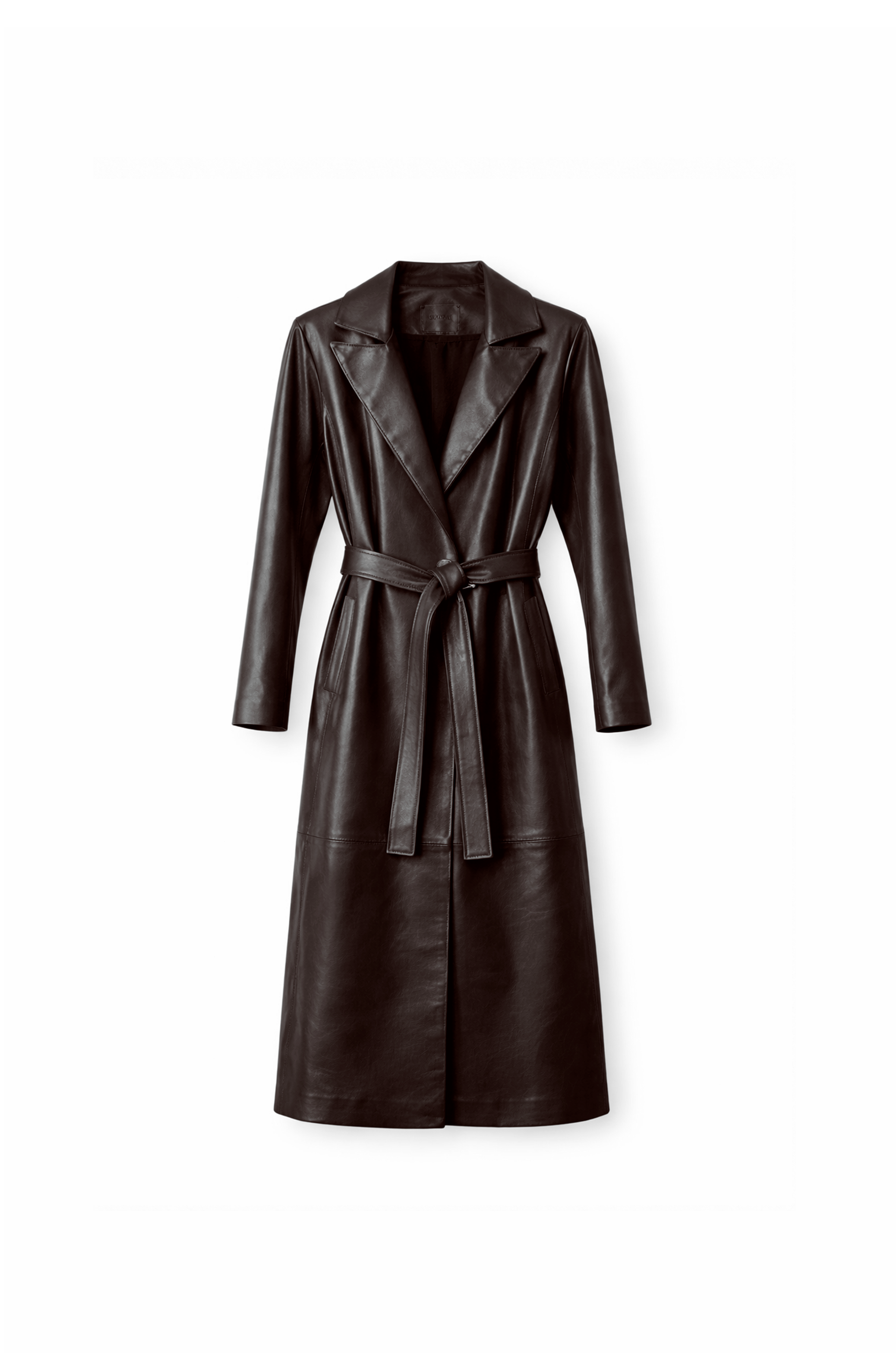 Este tapado de cuero largo tiene todo para convertirse en el protagonista del look. El diseño cruzado con solapas amplias y cinturón permite ajustarlo en la cintura y darle la forma que mas te guste.