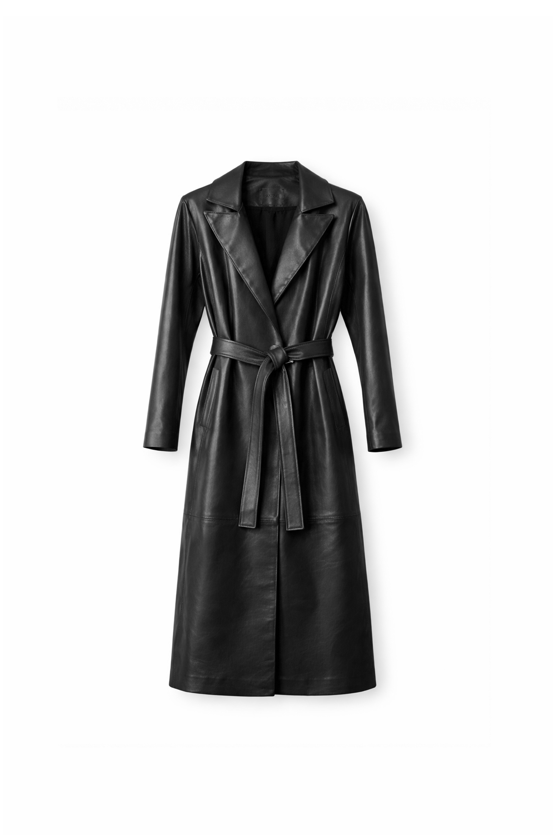 Este tapado de cuero largo tiene todo para convertirse en el protagonista del look. El diseño cruzado con solapas amplias y cinturón permite ajustarlo en la cintura y darle la forma que mas te guste.