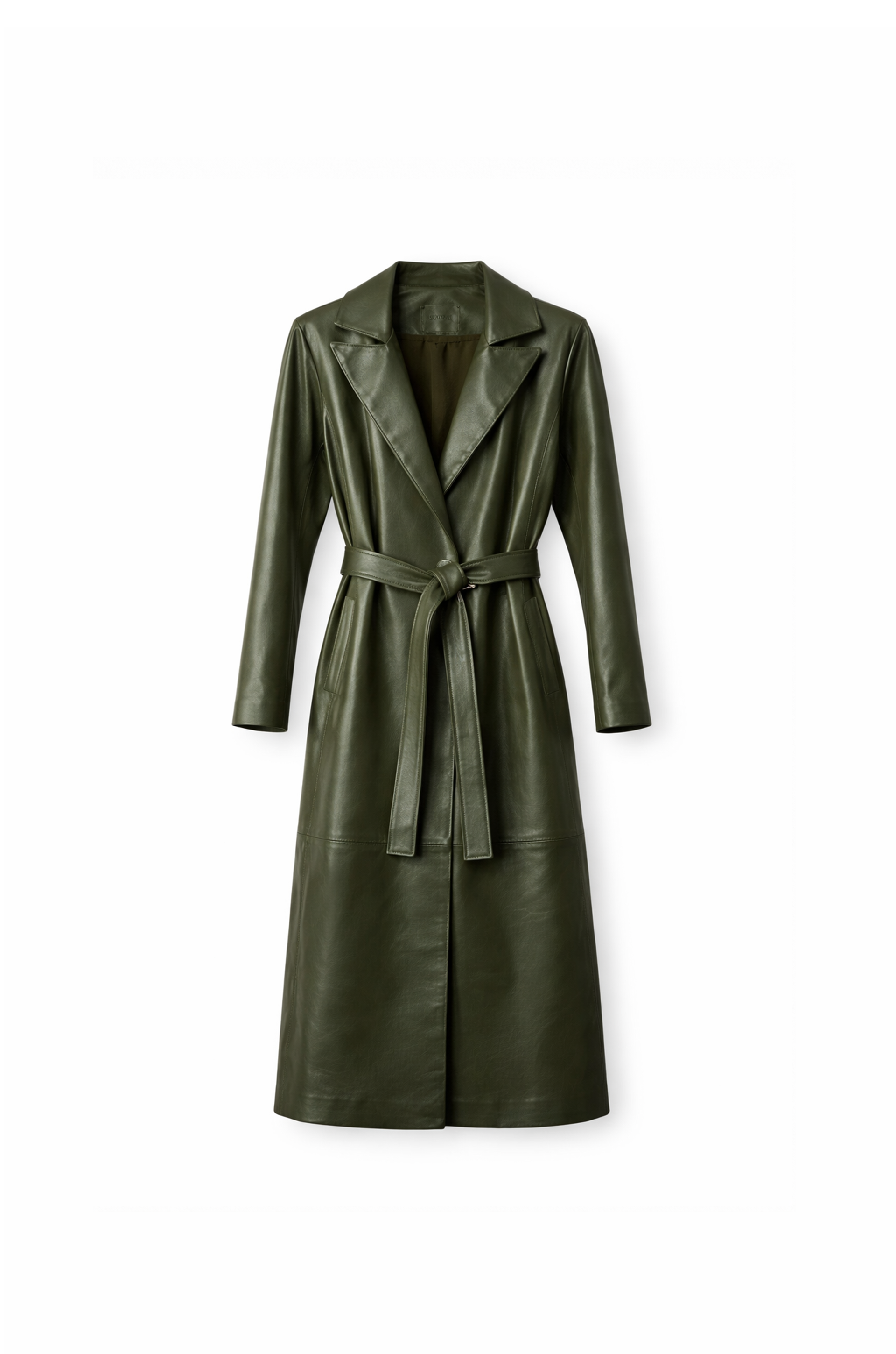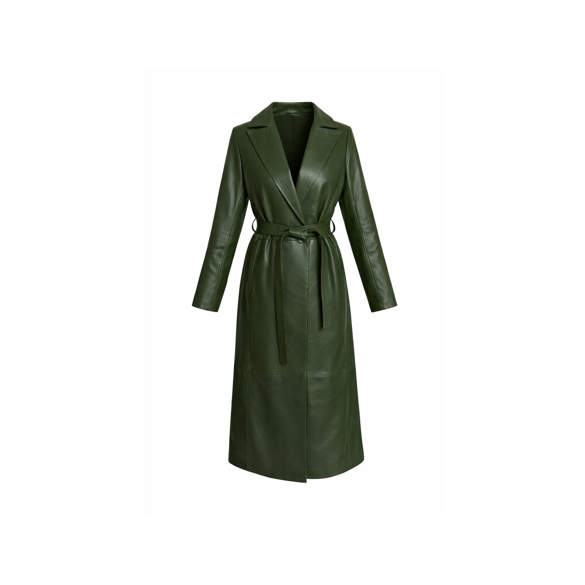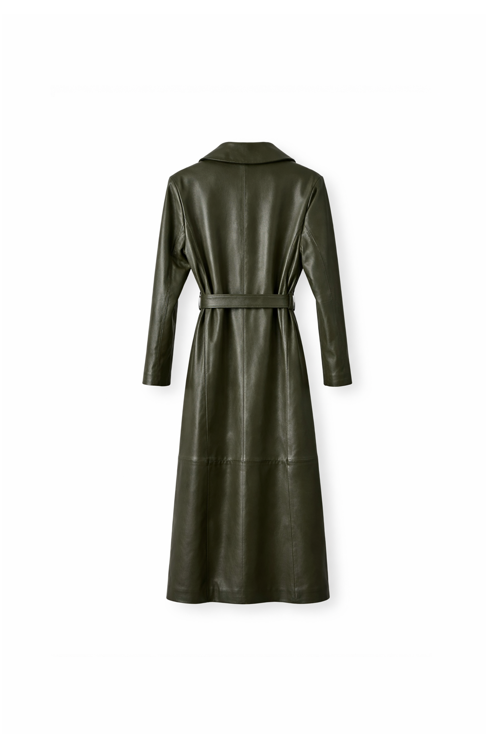 Este tapado de cuero largo tiene todo para convertirse en el protagonista del look. El diseño cruzado con solapas amplias y cinturón permite ajustarlo en la cintura y darle la forma que mas te guste.