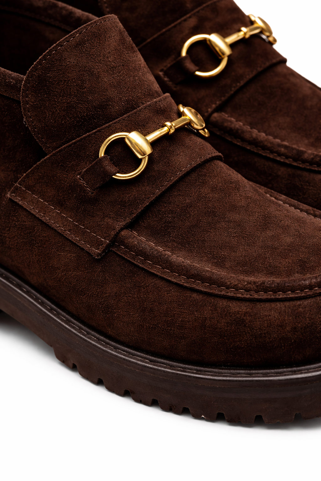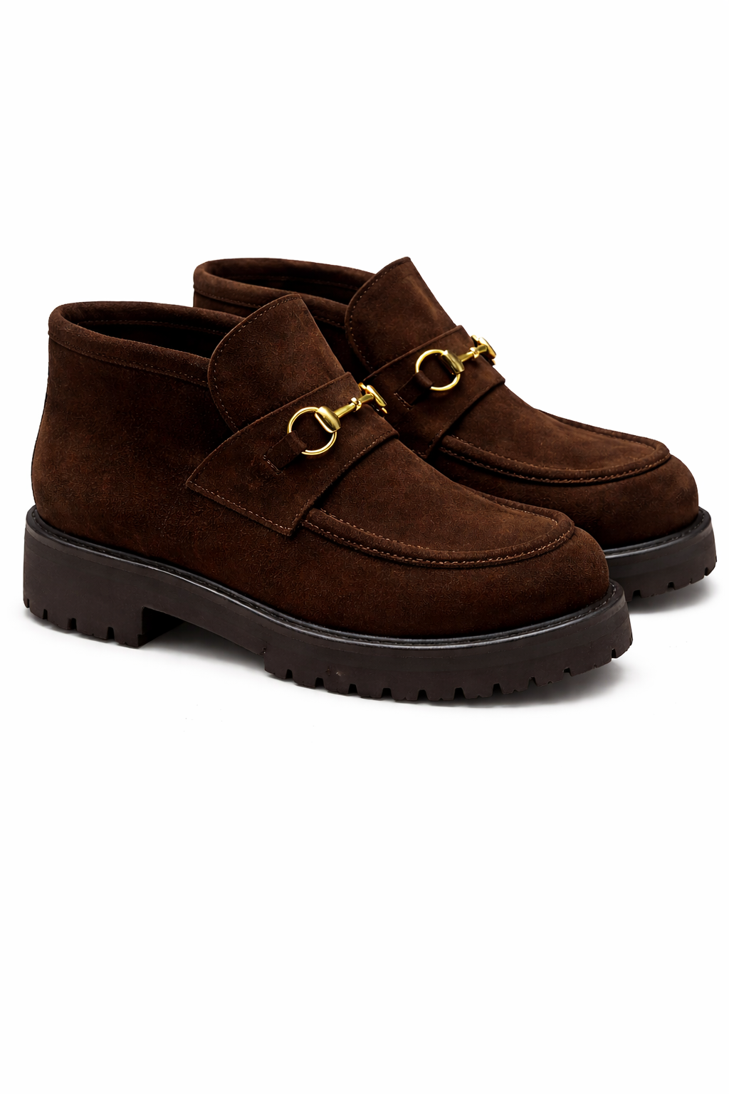 Borcego de gamuza con aplique dorado.